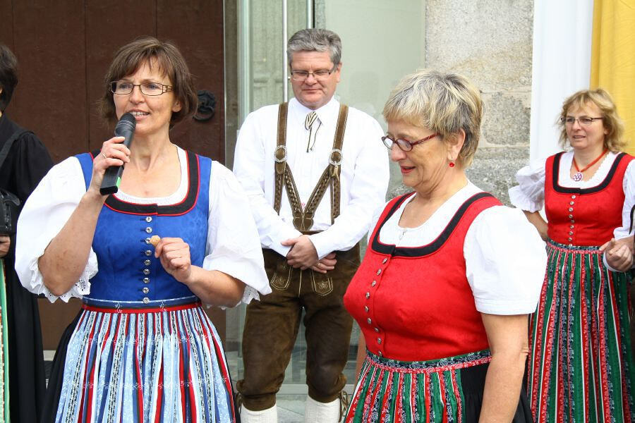 Die Volkstanzgruppe Grünbach unterhielt dabei mit schwungvollen Tänzen und nahm die Feier auch extra zum Anlass, ihre neue Vereinstracht zu präsentieren.