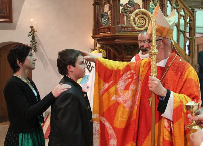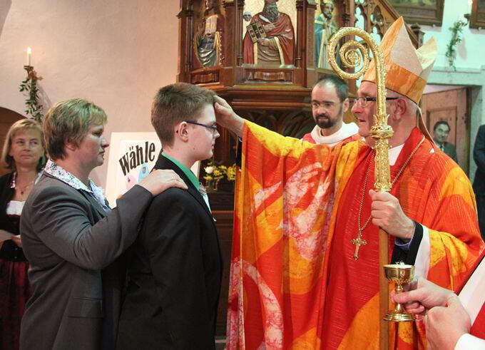 Stellvertretend für alle baten 2 junge Burschen Herrn Prälat um die Spende dieses heiligen Sakramentes.