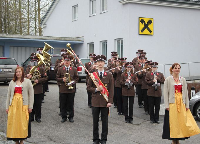 Trotz leichtem Nieseln konnte der Festzug zur Kirche durchgeführt werden.