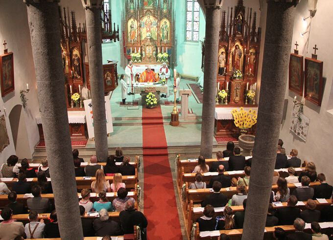 Prälat Johann Holzinger begrüßte nach dem feierlichen Einzug in die Kirche die