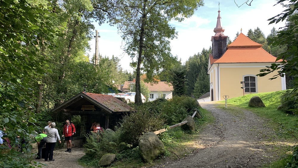 Am 2. Oktober fanden sich 12 Personen aus Grünbach und eine Windhaagerin um 08.30 Uhr bei strahlendem Herbstwetter vor der Pfarrkirche ein und starteten ihre Fußwallfahrt in Richtung St. Leonhard. Die Route führte von Grünbach über‘n Jagsch, Reickersdorf, St. Oswald bis nach Maria Bründl, wo nach ein paar stärkenden Schluck Bründlwasser in der Kapelle eine kurze Andacht abgehalten wurde. Weiter ging es dann nach March. Dort wurden wir von der Mittagsglocke der Kapelle empfangen. Sekunden später wurde dann das Läuten vom ohrenbetörenden Heulen der Sirene zur Zivilschutzprobealarmierung am Feuerwehrhaus abgelöst. Im Feuerwehrhaus March wurde Mittag gemacht und gemeinsam die mitgebrachte Jause verzehrt.