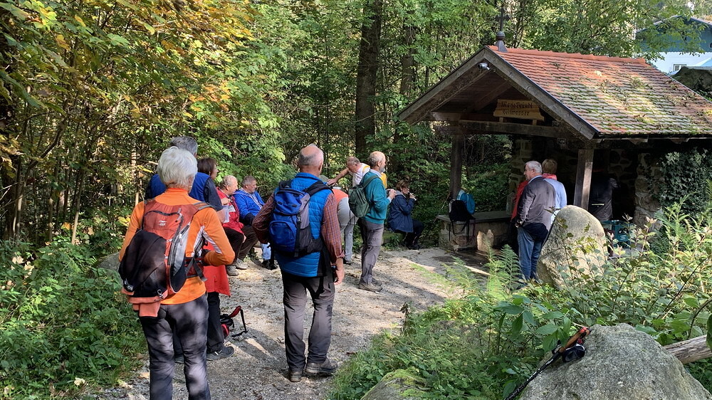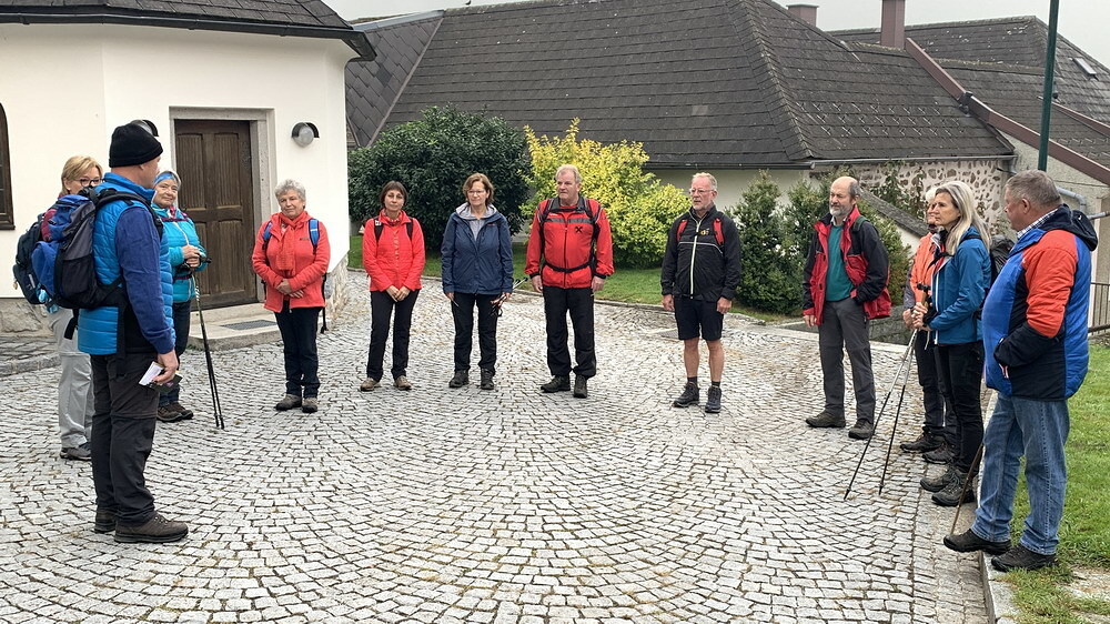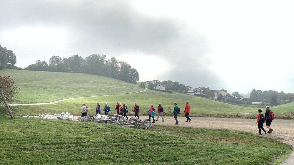 Am 8. Oktober, bei neblig kühlem Herbstwetter, startete die Pilgergruppe um 08.30 Uhr die 20km Fußwallfahrt bei der Pfarrkirche Grünbach. Teils schweigend, betend aber auch mit guten Gesprächen ging es über St. Oswald nach Maria Bründl. Dort wurde in der Kapelle eine kurze Andacht abgehalten.