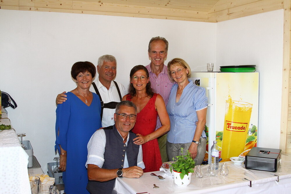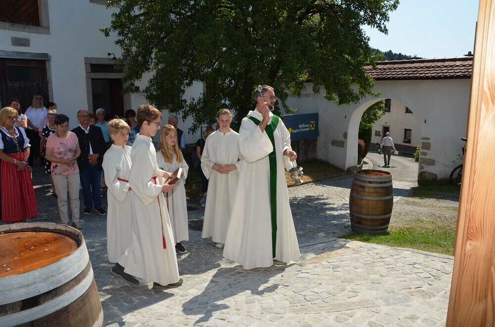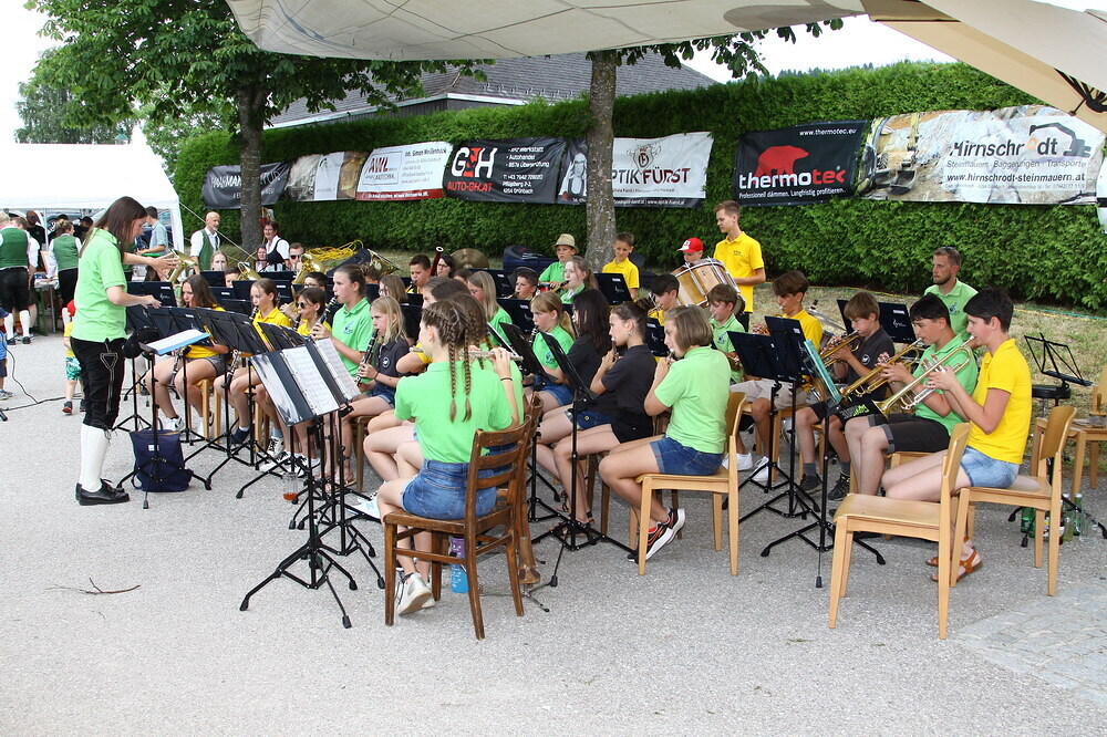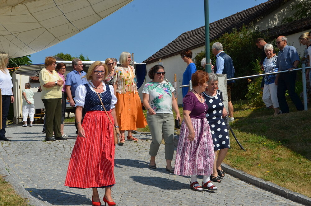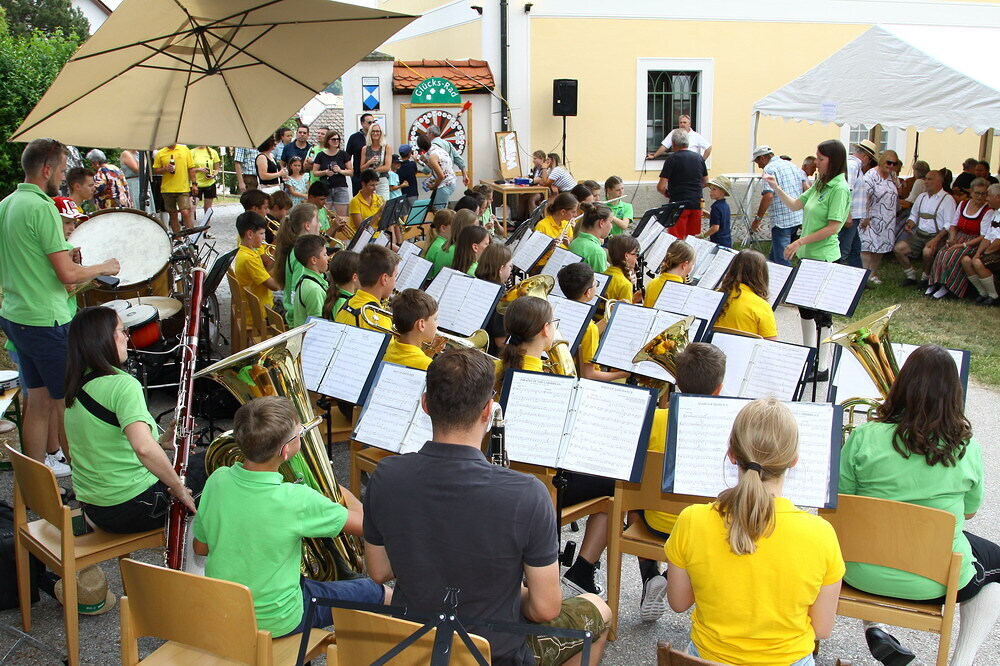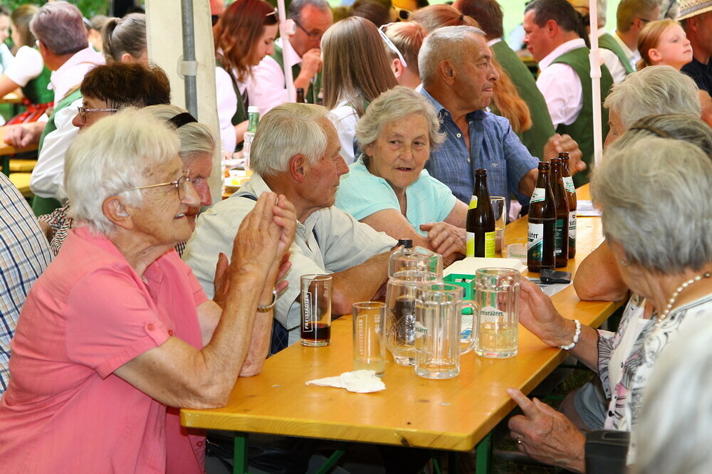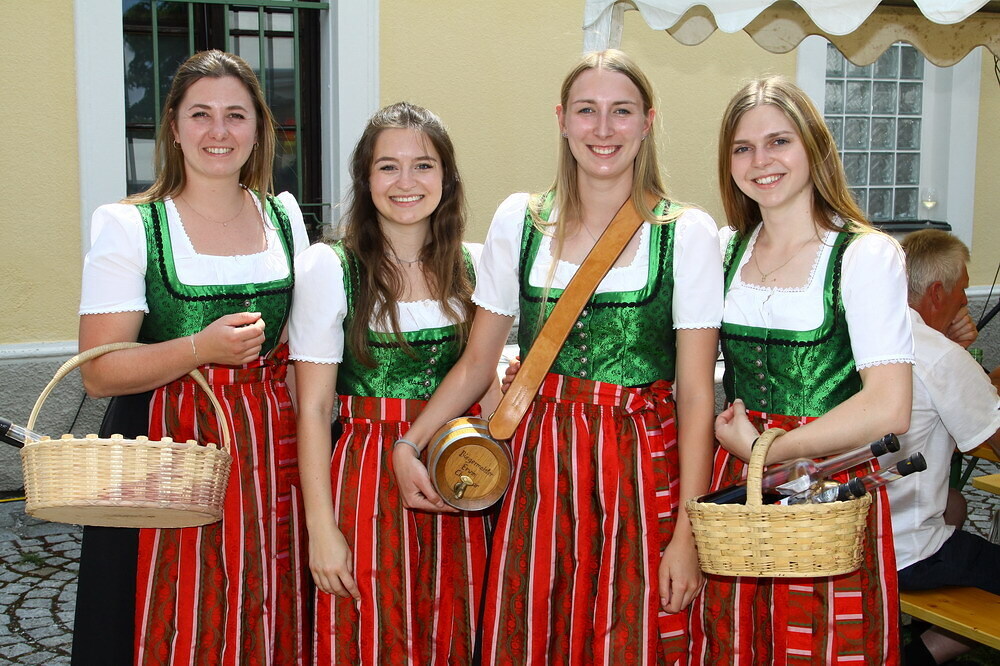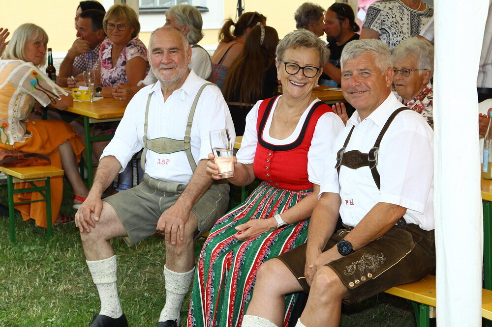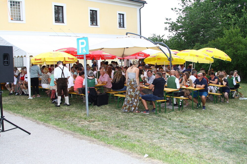 Bei Kaffee und Kuchen und später bei einem guten Essen genossen die vielen Besucher auf dem beschatteten Vorplatz des Pfarrhofes das Fest. Der Frühschoppen, gespielt vom Musikverein Grünbach, und anschließend noch von der Jugendkapelle „Muskitos“, brachte Volksfeststimmung ins Publikum.