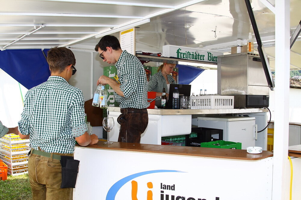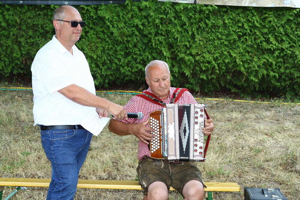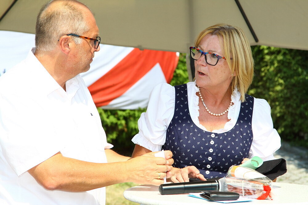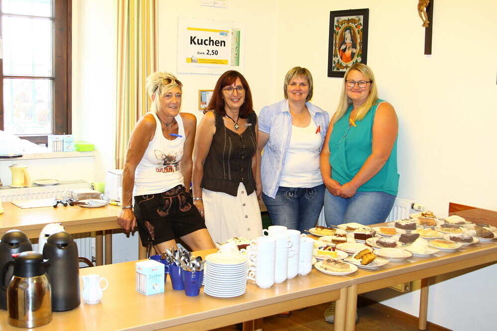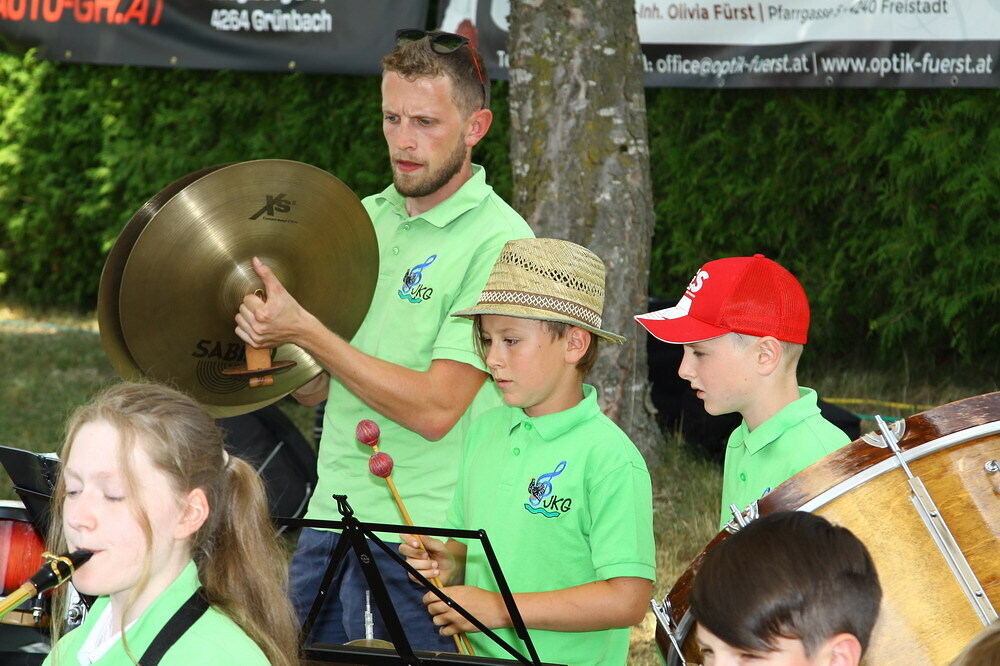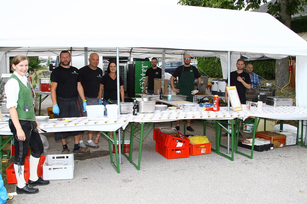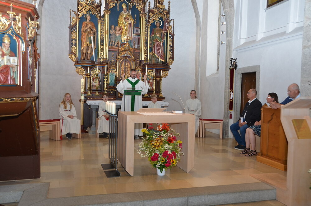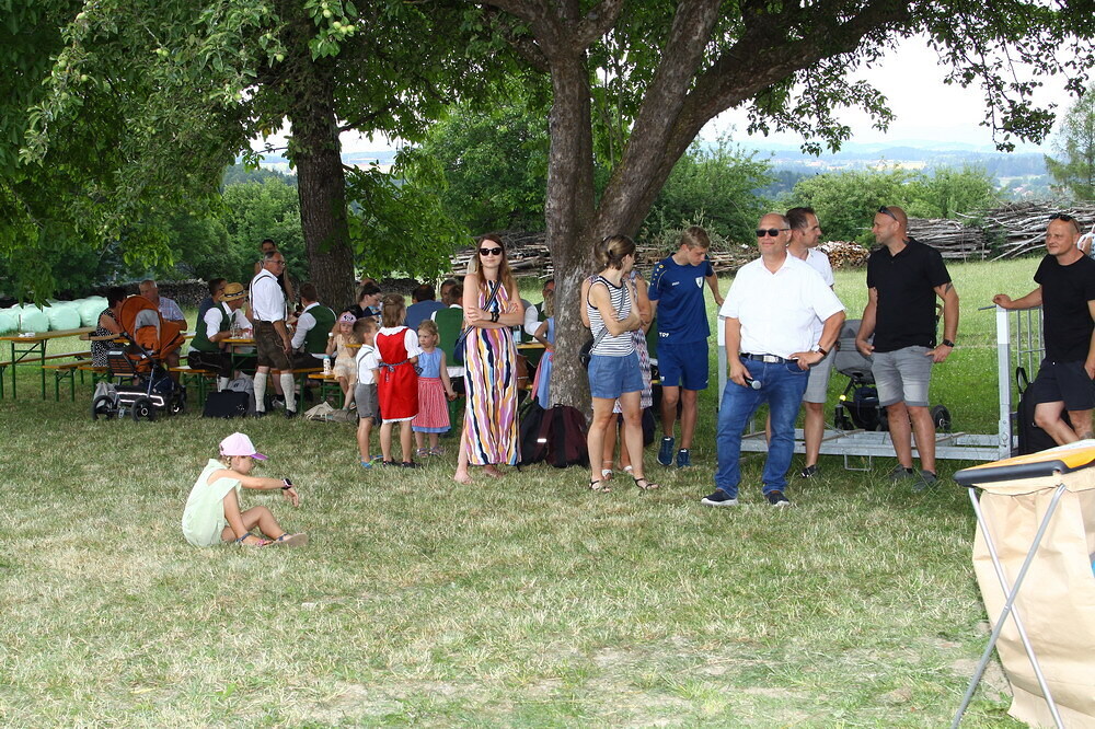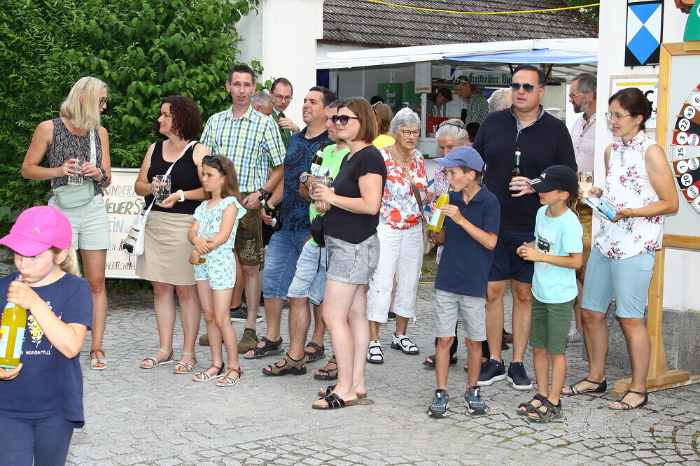 Bei Kaffee und Kuchen und später bei einem guten Essen genossen die vielen Besucher auf dem beschatteten Vorplatz des Pfarrhofes das Fest. Der Frühschoppen, gespielt vom Musikverein Grünbach, und anschließend noch von der Jugendkapelle „Muskitos“, brachte Volksfeststimmung ins Publikum.