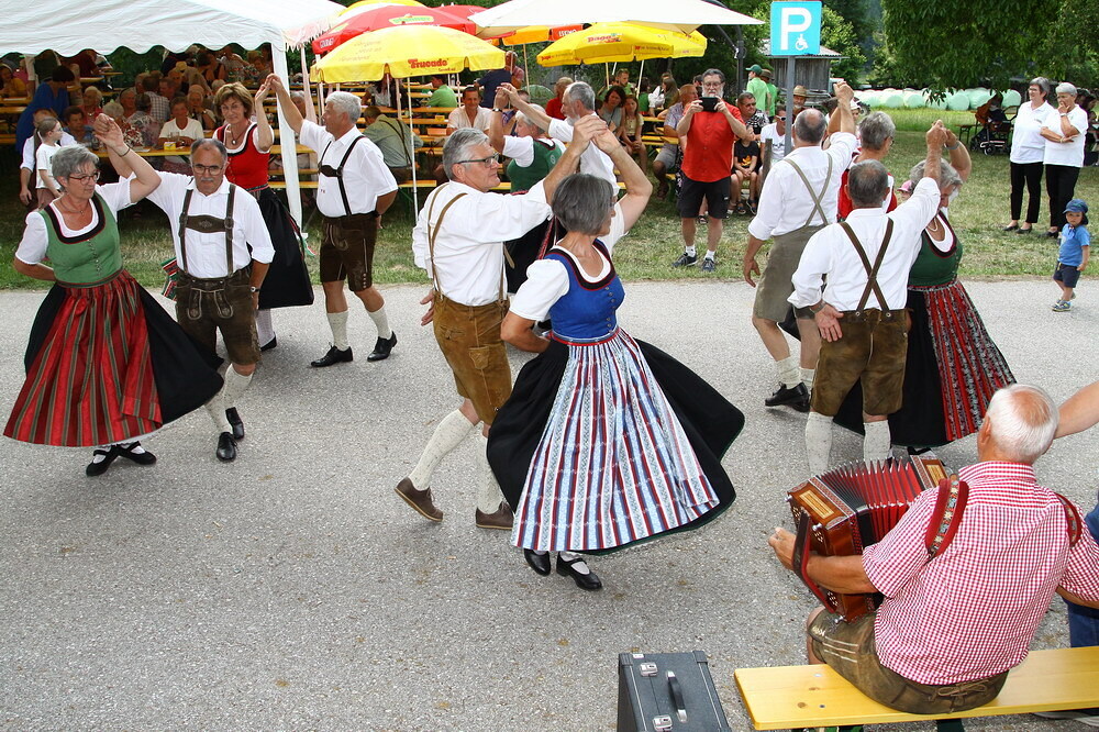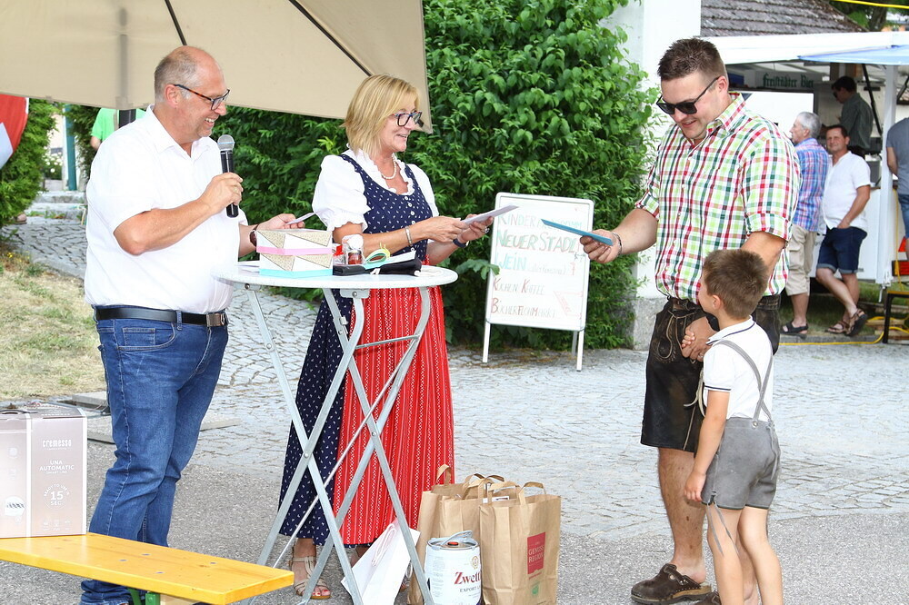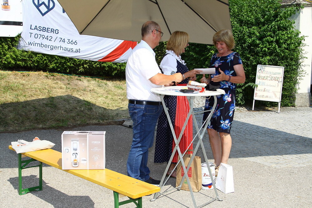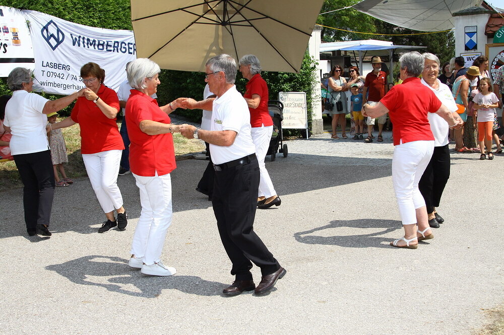 Die Tanzeinlagen der Volkstanzgruppe, Kindertanz- und Seniorentanzgruppe kamen auch sehr gut an, so wie das Rahmenprogramm mit Bücher/Spiele-Flohmarkt, Kinderprogramm, Glücksrad für Kinder und das Schätzspiel, bei dem das Gewicht vom gesamten Pfarrgemeinderat erraten werden musste.