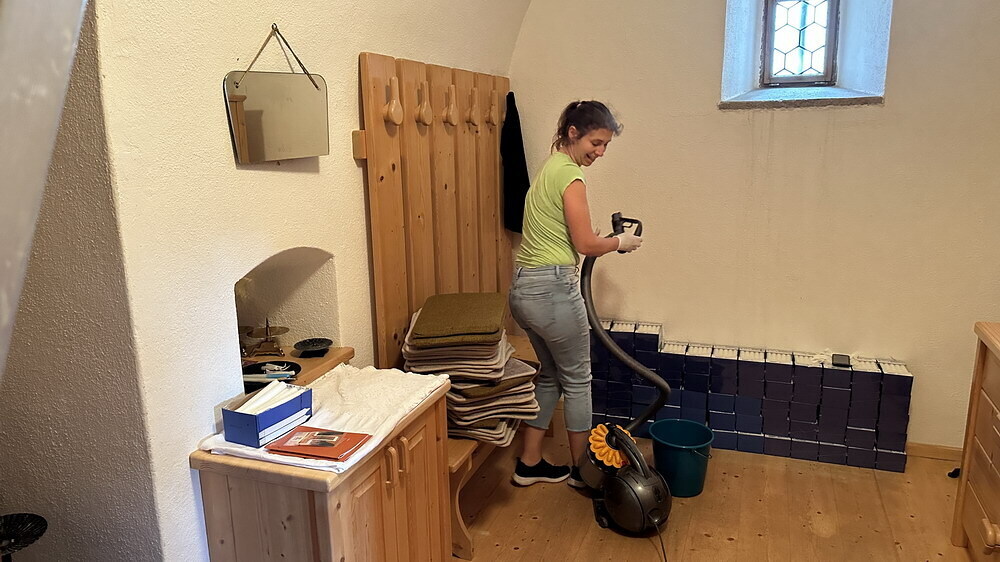 So nahmen am Montagnachmittag vor dem Fest ein paar fleißige Bienchen und Drohnen Lappen, Staubsauger und Wischmopp in die Hände und brachten unsere wunderschöne Kirche St. Michael innen auf Hochglanz.