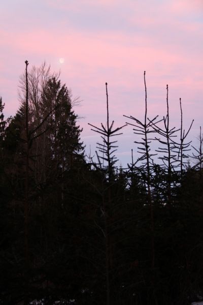ging es im Vollmondschein in Richtung Kirche. Während des Marsches konnte man beobachten, wie ein wunderschönes Morgenrot den Schein des Vollmondes ablöste und es von Minute zu Minute aufhellte.
