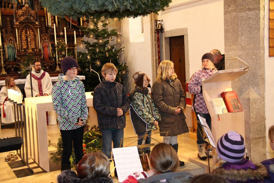 In der Kirche angekommen wurde eine mit Advent- und Weihnachtsliedern gestaltete Schülerrorate gefeiert.