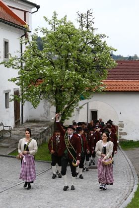 Auch der Wetterprophet hatte ein Einsehen mit den Erstkommunionkinder und so konnte der Festzug mit der Blasmusik zur Schule ohne nassen Segen von oben durchgeführt werden.