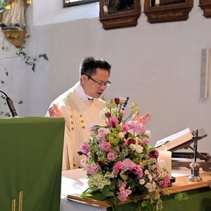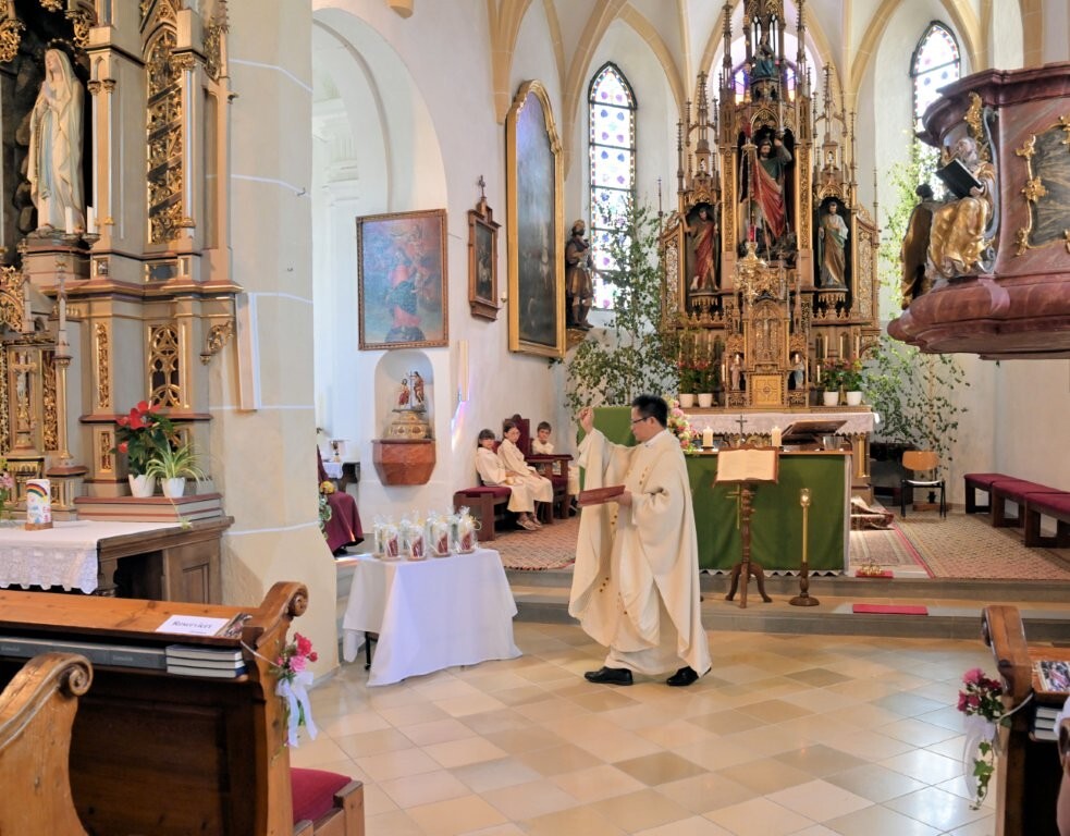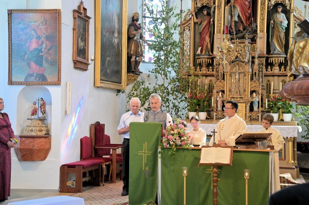 DANKE allen, die zum Gelingen des schönen Festes beigetragen haben: P. Josaphat, dem Mesner und den Ministranten, den Goldhaubenfrauen, den Bläsern, dem Kirchenchor, den KFB-Frauen für die Kerzen, den Blumenschmuck, dem PGR für die Agape, dem Fotografen und allen die mitgefeiert haben.