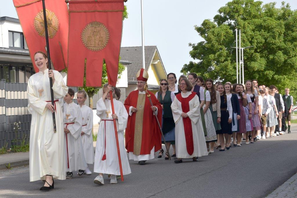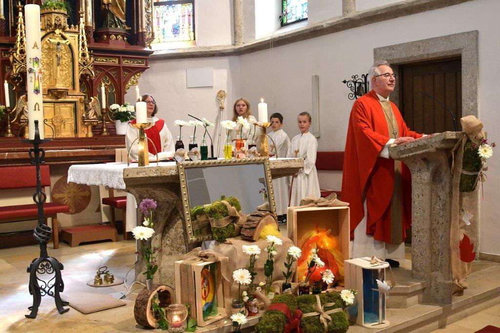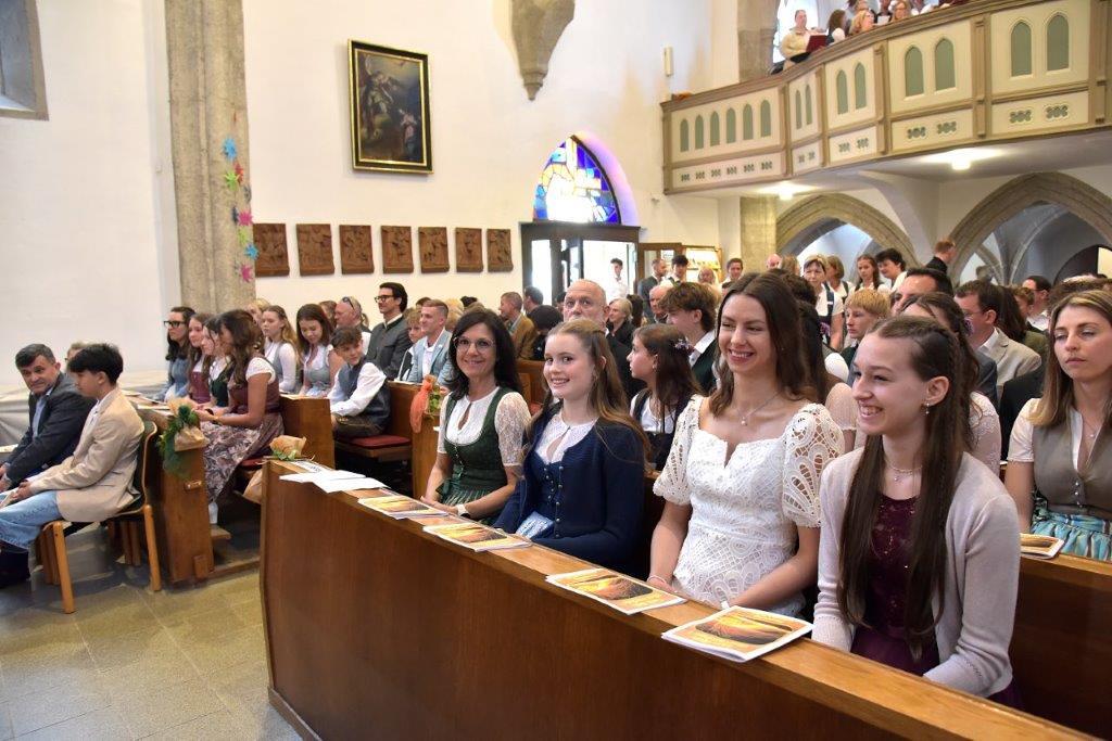 Bei bestem Wetter zogen die Fimlinge mit ihren PatInnen in die Kirche ein, wo schon der Chor Troubadour zu singen begann und den Firmgottesdienst sehr festlich und lebendig gestaltete. Wir danken dem Firmspender Abt em. Ambros Ebhart für sein Kommen und seine stärkenden Worte. „Lass dich überraschen!“, das war einerseits das Thema und dazu rief der Firmspender auch vor dem Segen noch einmal auf: „Lasst euch von Gott überraschen – er will das Beste für uns Menschen!