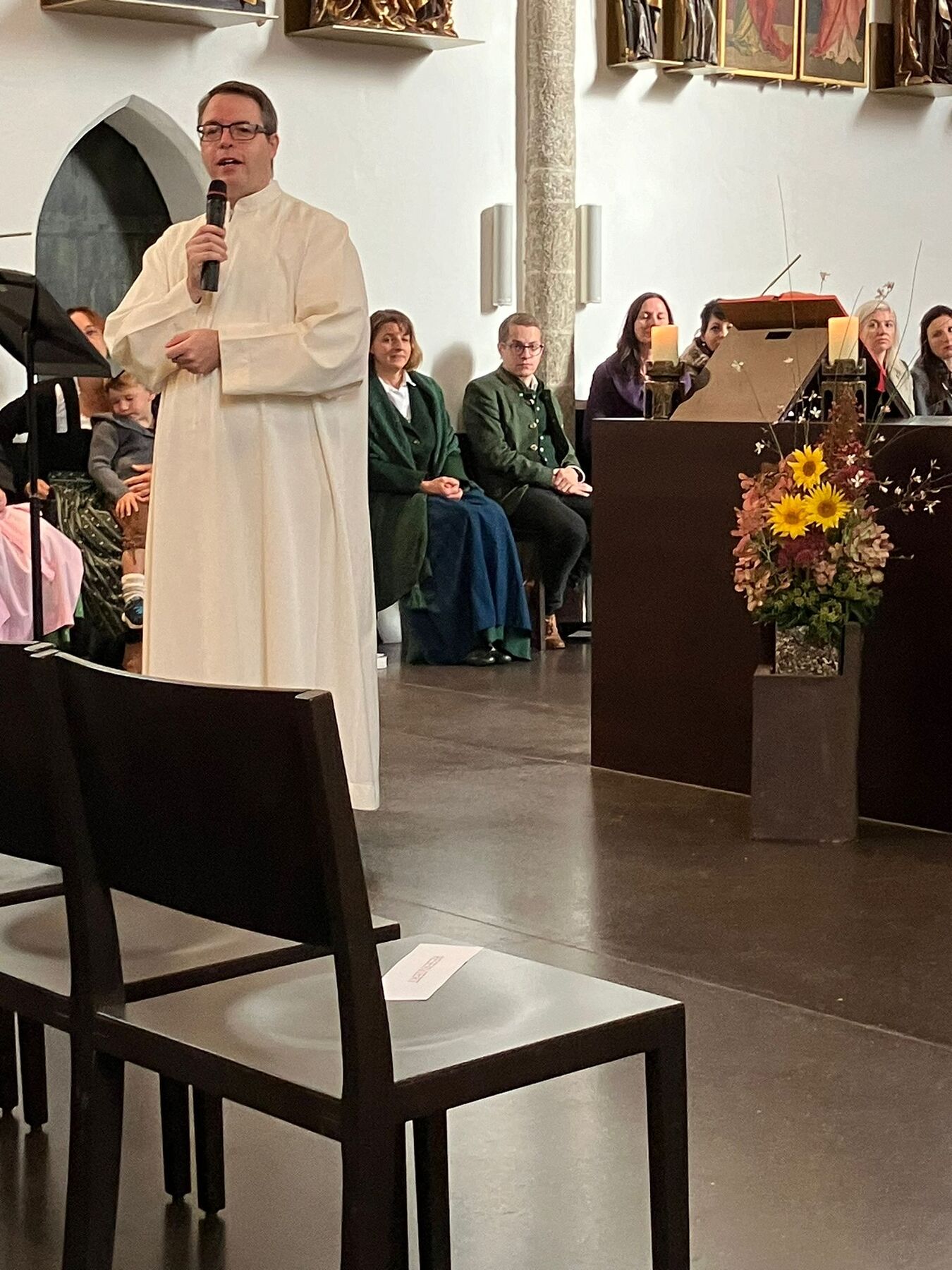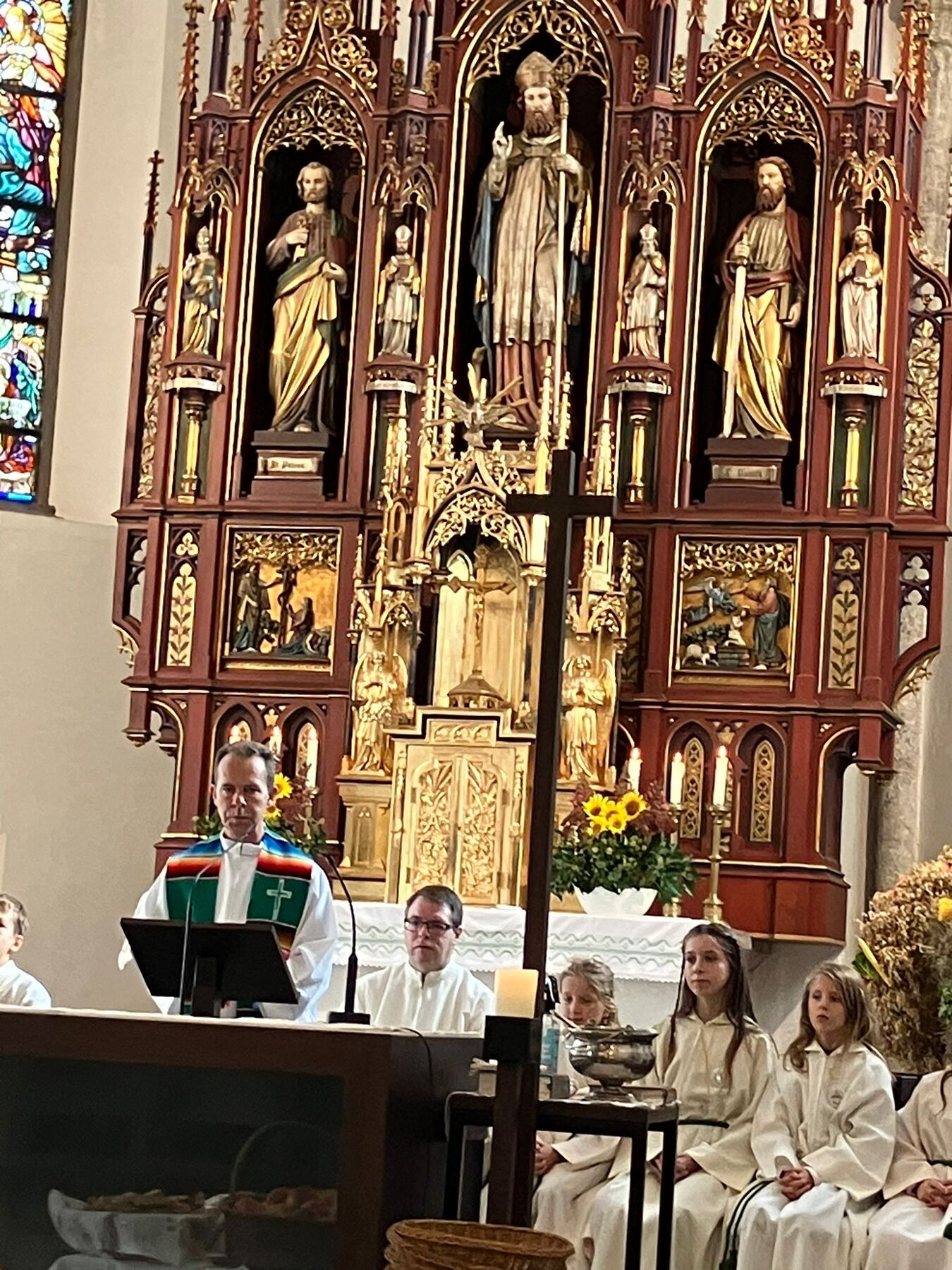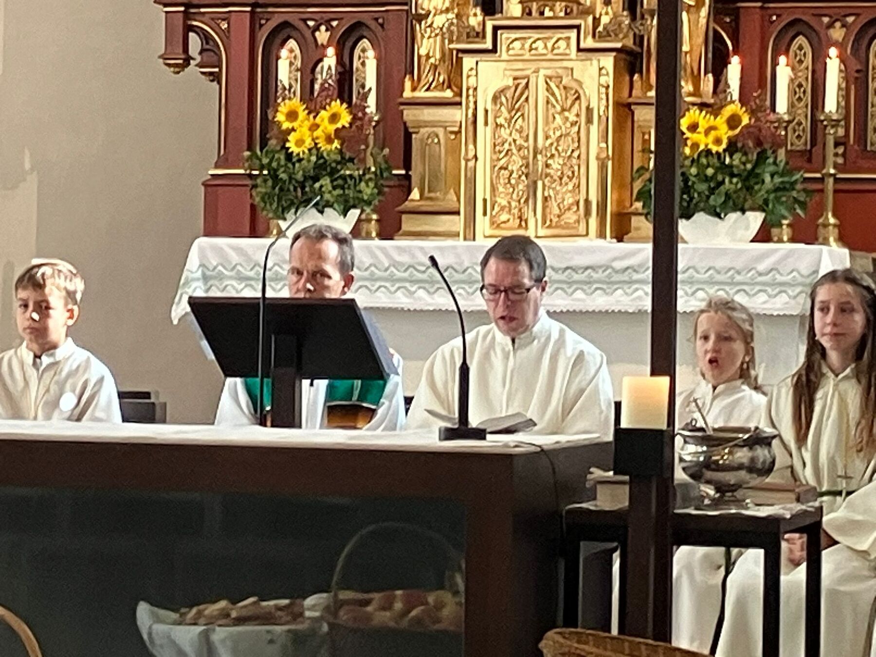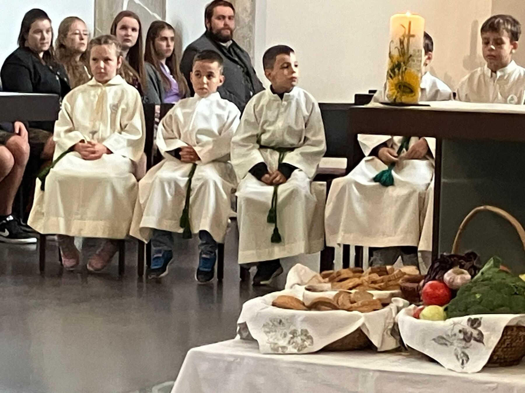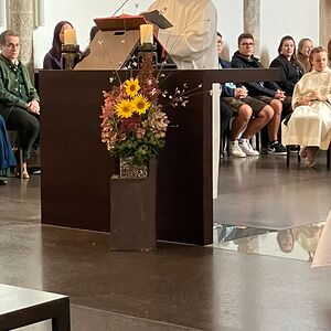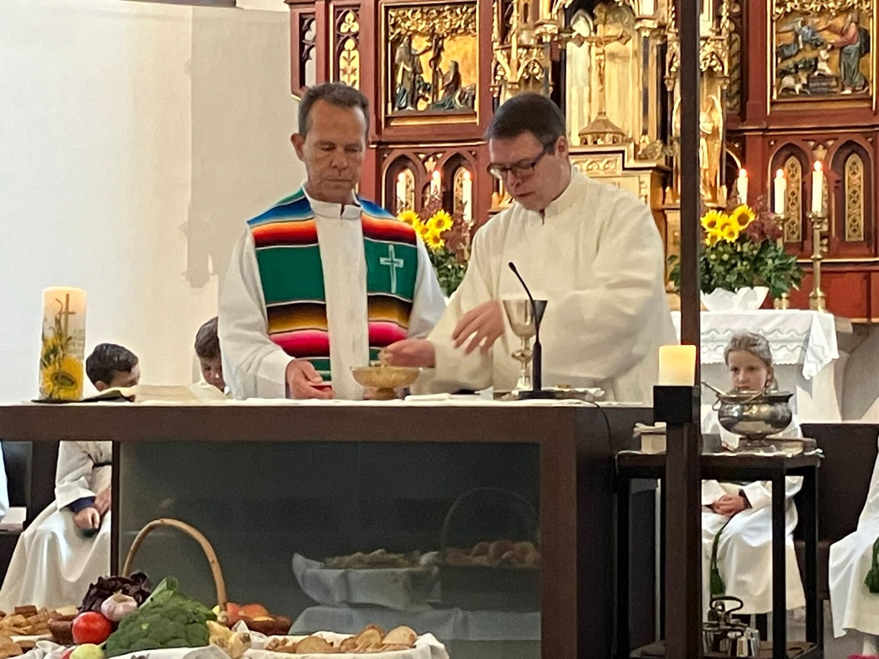 Pater Carlos von den Steyler Missionaren feierte gemeinsam mit unserem angehenden Diakon Roger Sohler den Festgottesdienst, der musikalisch von der Musikkapelle Gunskirchen gestaltet wurde. Bei der Predigt fragte unser angehender Diakon Roger Sohler nach dem Sinn des Erntedankfestes. Es geht nicht nur ums Danke sagen zur Ernte sondern ums Danke sagen generell. Besonders griff Roger dann das Tagesevangelium auf. Werdet wie die Kinder, nehmt den Glauben, die Gemeinschaft an, und fragt nicht zuviel nach dem dahinter. Annehmen und danke dafür sagen - das macht es im Leben und ganz speziell im Glauben viel leichter. Nach der Predigt segnete er dann die prachtvolle Erntekrone. Es war ein schöner und stimmiger Festgottesdienst und wir danken allen die für das Gelingen beigetragen haben, besonders den Goldhauben, der Landjugend, der Ortsbauernschaft und der Musikkapelle.