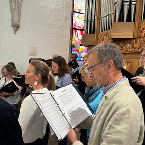 Die Lieder waren mitreissend und stimmungsvoll, beginnend mit dem Einzug „Schritt für Schritt“ über das „Halleluja“ bis zum „Ehrenwort“ der Trauung, dem „Heiligsten“ der Eucharistie und dem abschließenden „Leben unter Gottes Segen“.