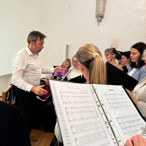 Chorleiter Andreas Mittermayr war zudem als Solist gemeinsam mit Silvia Waslmayr, einer Taufkirchnerin, zu hören. Am Keyboard Magdalena Pühringer aus Steinerkirchen. Sehr eindrucksvoll „Das Heiligste“ vor dem Schlussgebet.