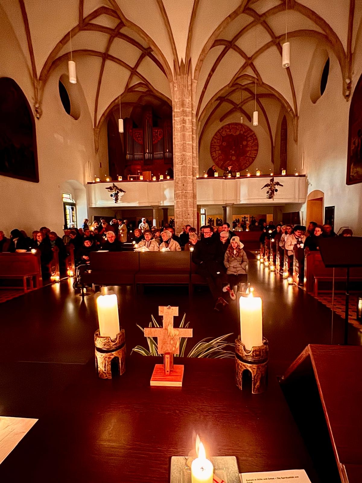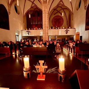 Eine wärmende Lichtkulisse, die Musik, die vierstimmigen Chorsätze der international bekannten Taizé-Bewegung wie auch die eindringlichen Texte von Frieden, Hoffnung und Zuversicht erwiesen sich für alle Beteiligten als besonderes Erlebnis.