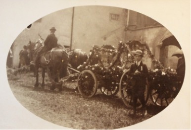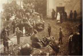 Aus der Pfarrchronik 1923: Am Markustag kam eine Einigung mit der Firma Oberascher in Salzburg bezüglich der Lieferung der Glocken zustande. Am 25. Juni konnten dieselben mit dem Auto überführt werden. War das ein Jubel, als gegen halb acht Uhr abends das Auto gesichtet wurde. Von allen Seiten strömten die Leute zusammen, sie mussten ja die Glocken sehen. Jubelnd grüßte auch die alte Fallsbacher Glocke, weil sie endlich wieder heimkehren kann nach Fallsbach, wo sie seit fast 500 Jahren (1485) daheim war. Die Freude ist auch voll berechtigt. Glockengießer Oberascher hat uns herrliche Glocken geliefert; zum äußeren Glanz stimmt ihr prächtiger Klang. Von einem Prachtwetter begünstigt, konnte sich am Sonntag die Glockenweihe zum höchsten Fest entwickeln. Als Vorfeier war am Samstag abends Turm- und Ortsbeleuchtung, Turmmusik, Fackelzug und Zapfenstreich unter größter Teilnahme der Leute aus Nah und Fern. Unvergesslich bleibt gewiss allen das Weihefest. Im großartigen Festzug wurden allgemein die herzig geschmückten Glockenwagen bewundert. Die große Glocke führte der Gasperl von Wallnstorf, die zweite der Mair in Grünbach und der Hacker zu Vitzing, die dritte und vierte der Mair und der Reimer zu Dorf; die Sterbeglocke Herr Steinwendner mit seinen Rappen. Die sehenswerten Viergespanne waren durch ihre glänzenden „Hinterzeuge“ besonders aufallend. Die feierliche Weihe am Kirchenplatz nahm der hochw. Herr Prälat von Lambach vor. Der Aufzug der Glocken ging Dank der umsichtigen Vorbereitung des Poliers Karl Lugmayr und der Leitung seines Meisters Zwirchmayr tadellos von statten. Gegen 6 Uhr abends konnten endlich die Glocken das erste Mal geläutet werden. Alles horchte auf, als die kleine ihre Stimme hören ließ, heil und doch so weich, so recht geeignet, Spannung in unseren Herzen zu wecken. Immer stiller wurde es in der lauschenden Menge, sobald sich die nächste in den Chor mit ihrer Stimme mischte und als die Glocken wieder verstummten, sangen alle Zungen ihr Lob: Herrlich schön, ein Domgeläute! Und wahrlich, Gunskirchen darf stolz sein auf sein Geläute. Wenn es auch ein langes Jahr hat warten müssen, wenn es auch große Opfer gebraucht hat, die herrlichen Glocken machten jetzt alles vergessen. Herzlichen Dank allen, die zum herrlichen Fest verholfen haben. Der ganzen Pfarrgemeinde, die so einmütig zusammengeholfen hat, den Patinnen und Ehrendamen, der Musikkapelle mit dem Chormeister H. Köhrer, in uneigennütziger Weise das Fest verschönerte, den Feuerwehren von Gunskirchen und Fernreith, die den Aufzug besorgten. Dank allen und jeden.