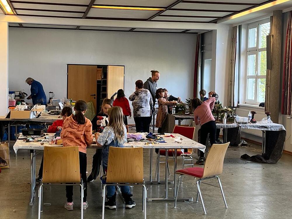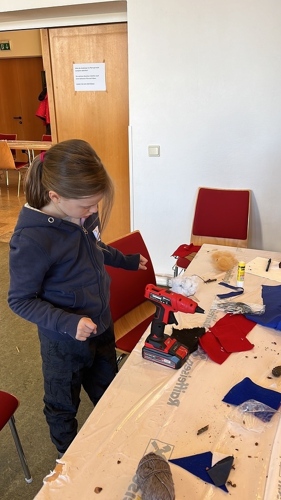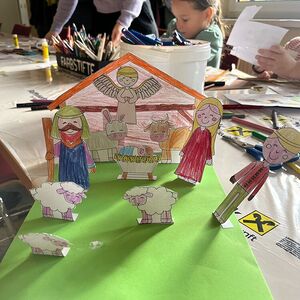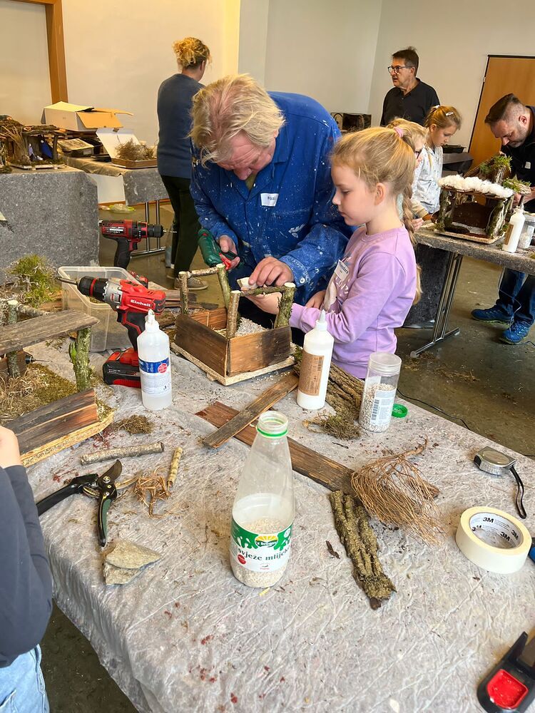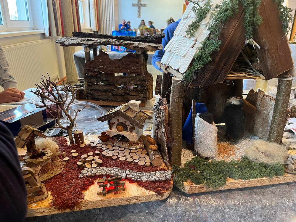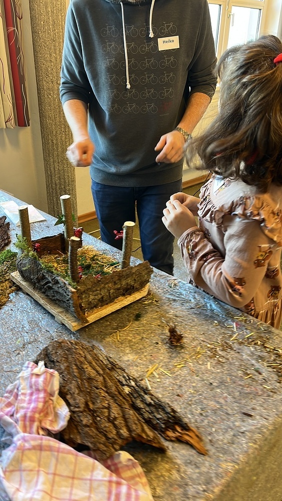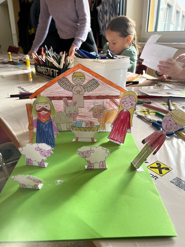 einer Papierkrippe. Bewundernswert war der Einsatz der Väter am Samstagnachmittag welch voll motiviert ihren Kindern beim Ausschneiden halfen.