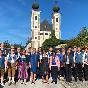 Am Sonntag, gleich nach dem Frühstück, macht wir uns auf in die Wallfahrtskirche nach Frauenberg. Eine wunderschöne Kirche mit barocken und frühbarocken Altären und Rokoko-Statuen. In traumhafter Lage hoch über dem Ennstal konnten wir an diesem Morgen eine wunderschöne Aussichtgenießen. In der Basilika durften wir das Erntedankfest musikalisch gestalten. Wir sangen die „Gutauer Messe“ von Fritz Renhart. Harald Mayr (Harmonika) und Birgit Gruber (Gitarre) begleiteten uns mit Ihren Instrumenten. Einige Lieder, passend zum Fest ergänzten das musikalische Programm. Bei der anschließenden Agape mischten wir uns unter die Gottesdienstbesucher und es ergaben sich schöne Begegnungen.