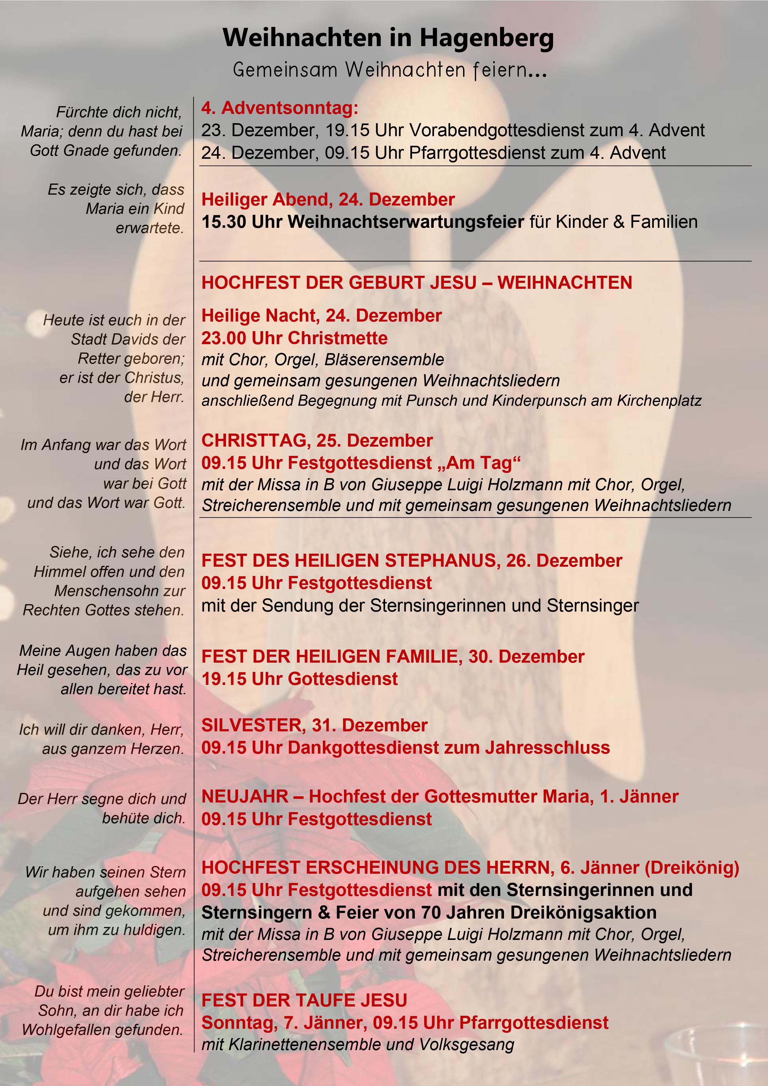 Wir laden herzlich ein zur gemeinsamen Feier der Gottesdienste in der Weihnachtszeit!