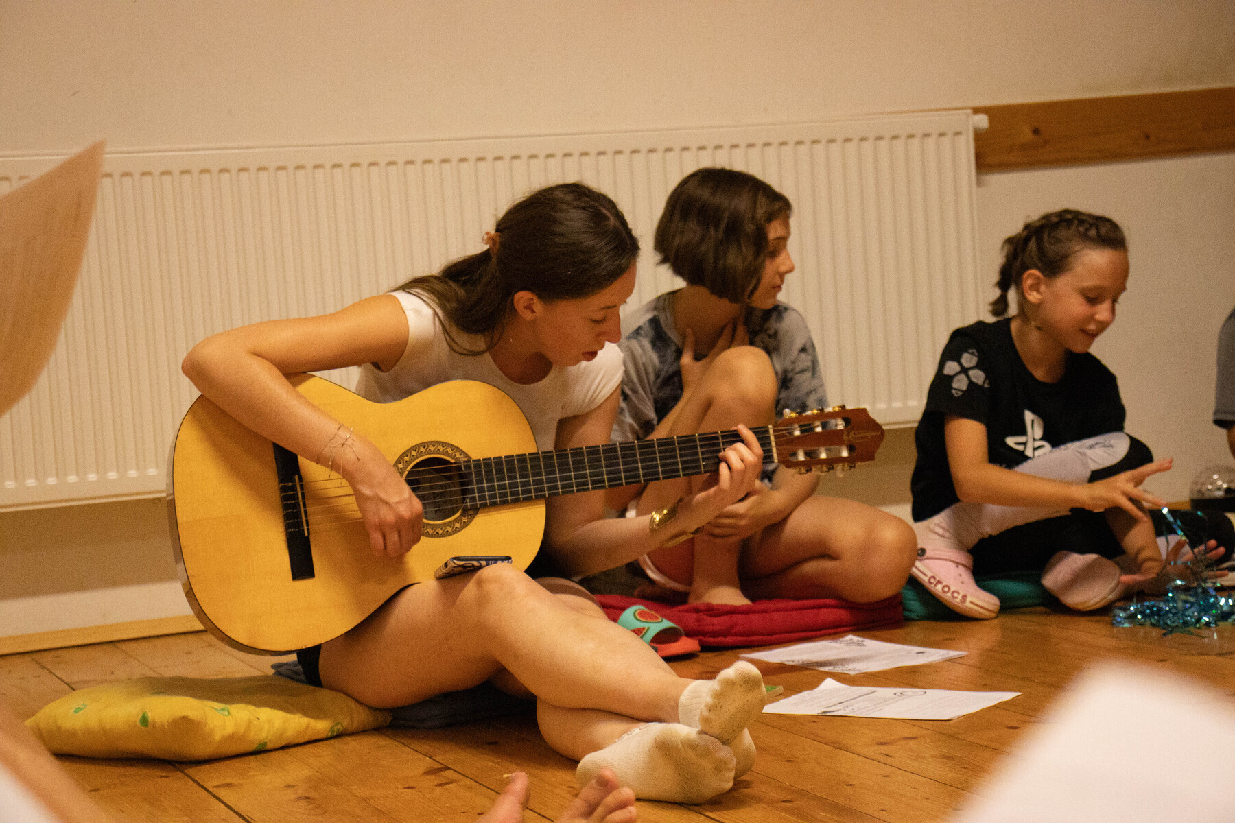 Am Donnerstag feierten wir gemeinsam den Jungscharlager-Gottesdienst. Gemeinsam sangen, beteten und dankten wir für die schöne Zeit. Unter dem Motto „Herzensspuren“ dachten wir darüber nach, welche Menschen und Erinnerungen Spuren in unseren Herzen hinterlassen und wo wir Spuren hinterlassen. Im Anschluss bereiteten die Kinder in Gruppen den bunten Abend vor. Jede Gruppe brachte kreative Einlagen ein – von Tänzen über Sketche bis hin zu musikalischen Beiträgen war alles dabei. Der Abend war der fröhliche Höhepunkt der Woche, der mit einer Disco, viel Lachen und ausgelassener Stimmung gefeiert wurde.