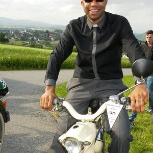 Musikalisch wurde die Segnung durch den Jugendchor unter der Leitung von Dr. Marlene Schönhuber umrahmt. Auch für Pfarrer Paulinus war die Mopedsegnung eine Prämiere. Das es ihm auch Spaß gemacht hat sieht man an den Fotos wo er die verschiedenen Zweiräder ausprobiert :-) Zum Abschluss hat jeder Teilnehmer eine Christophorus-Plakette erhalten.