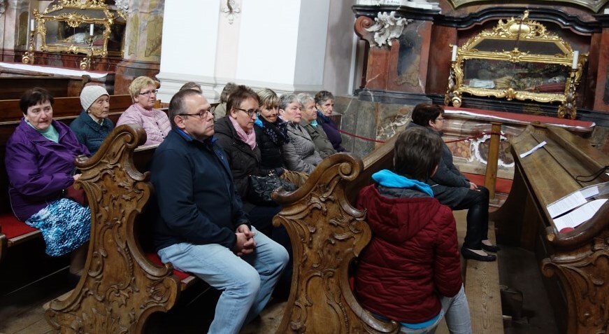 Mit 2 Straßl-Bussen ging die Fahrt am 26.4. nach Engelhartszell, in der Klosterkirche (Engelszell) wurde eine Andacht gestaltet und Abt Marianus nahm sich Zeit für einen Segen.