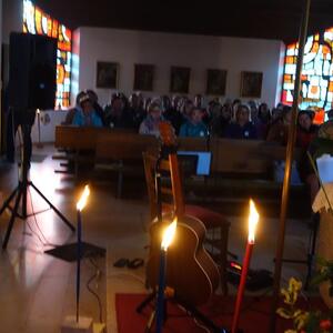 Auf das Gehen wurde witterungsbedingt verzichtet und ein sehr ansprechendes Ersatzprogramm mit „Fackellich“, Texten und verschiedenster Livemusik in der Kirche geboten.