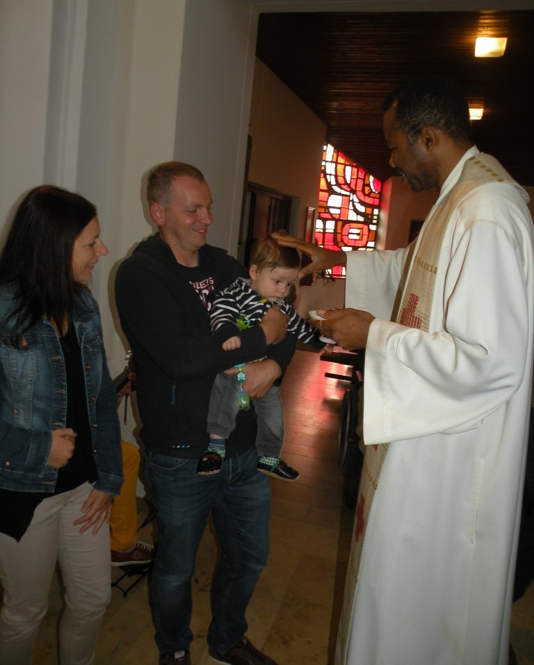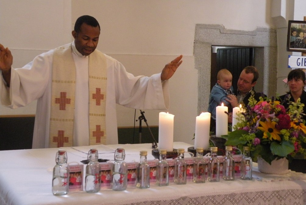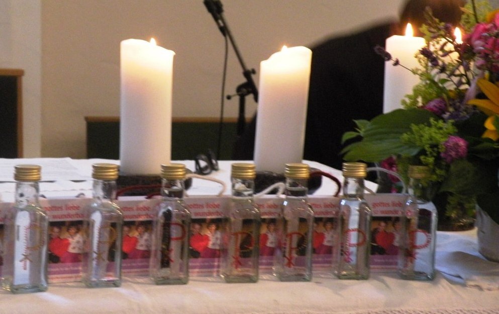 Als Geschenk erhielten die Eltern ein Fläschchen Weihwasser und ein kleines Büchlein mit Texten und Gebeten.