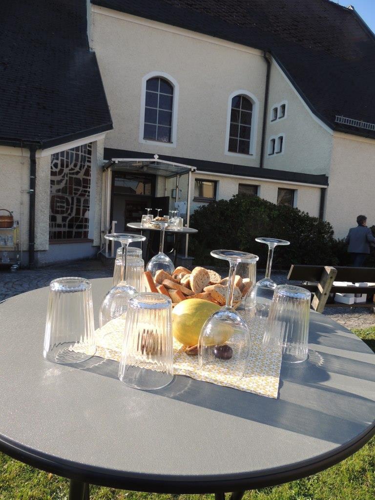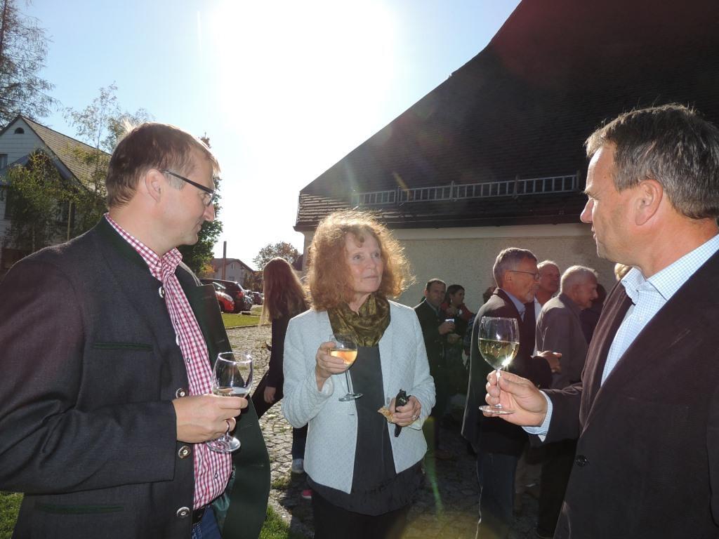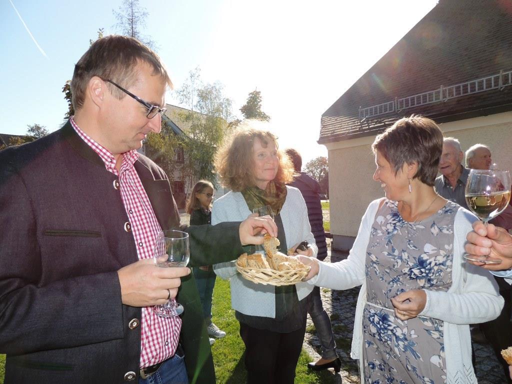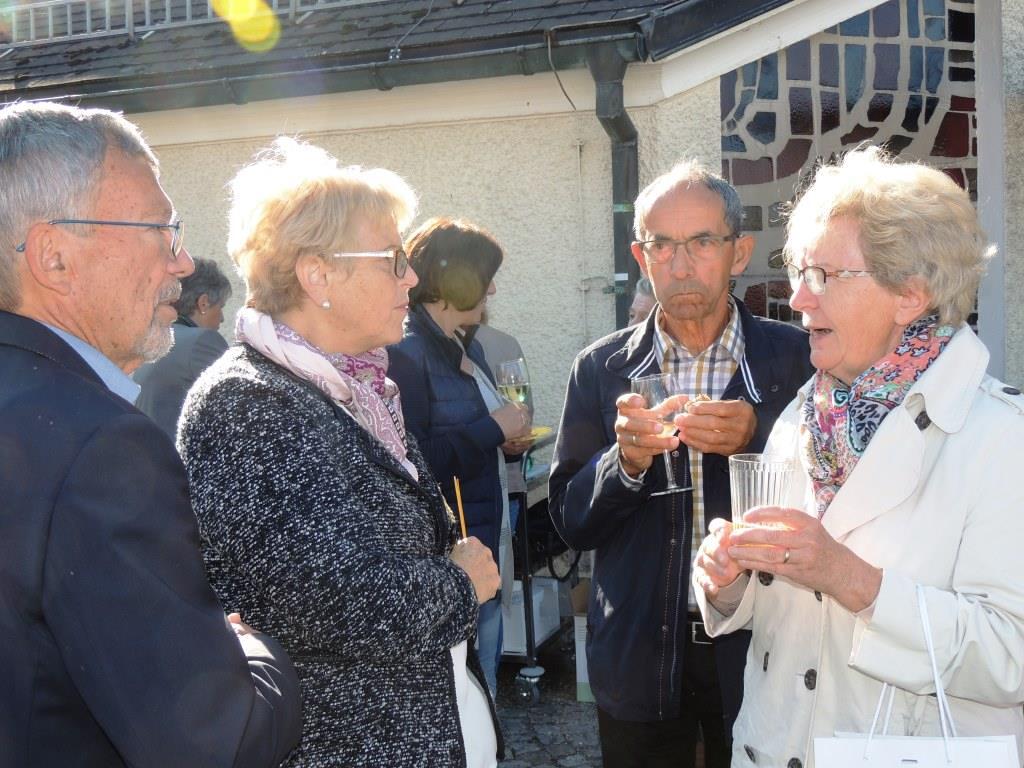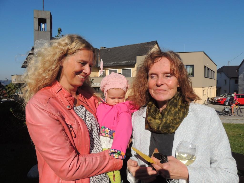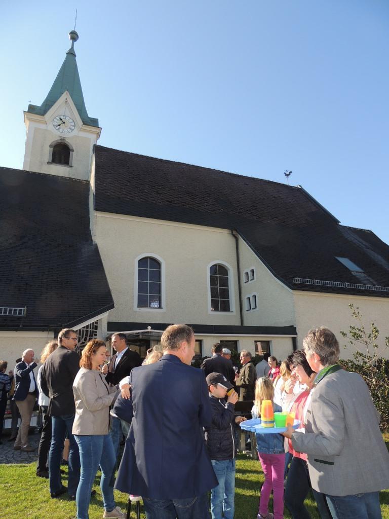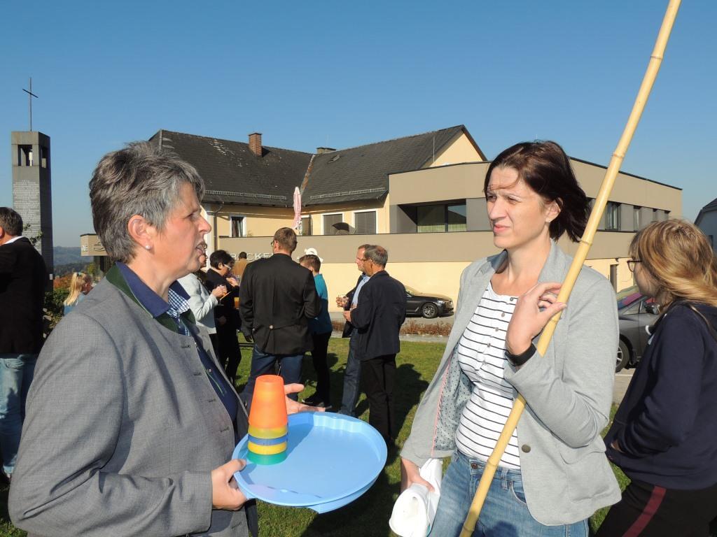 Nach der Messe gab es bei strahlendem Sonnenschein eine kleine Agape und die erste Gelegenheit für die Pfarrbevölkerung Dagmar Ruhm näher kennen zu lernen.