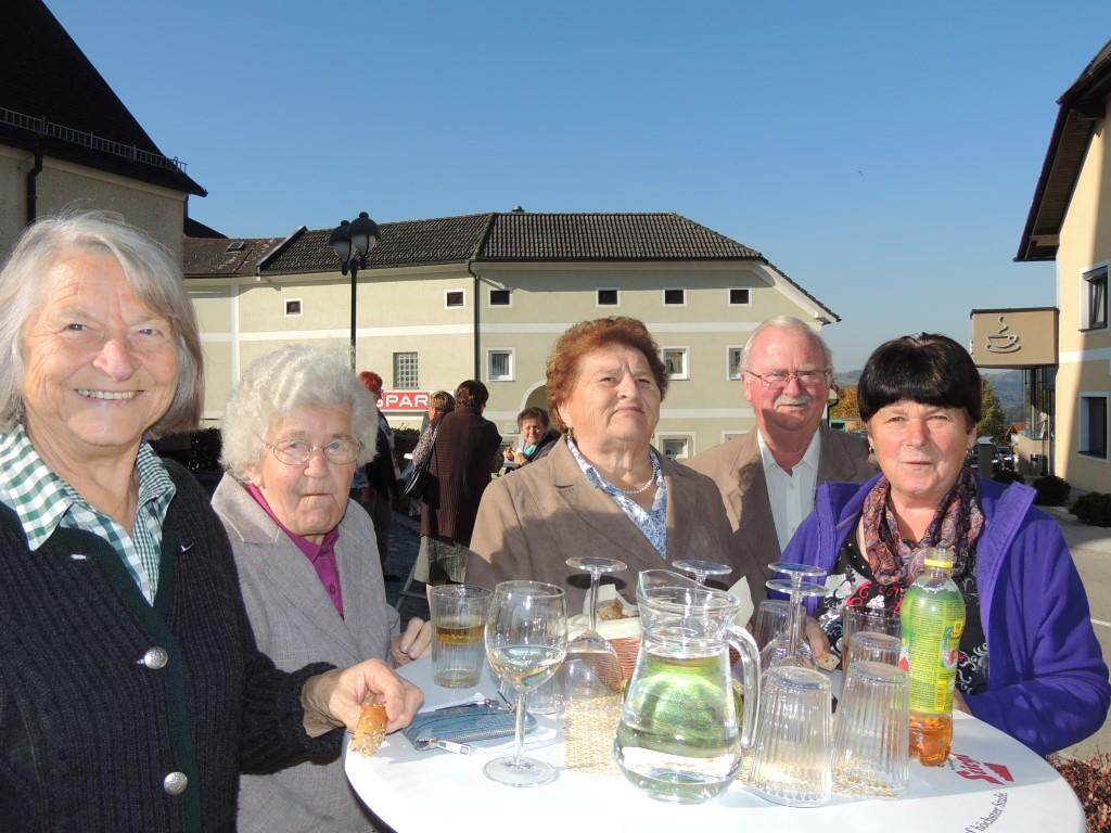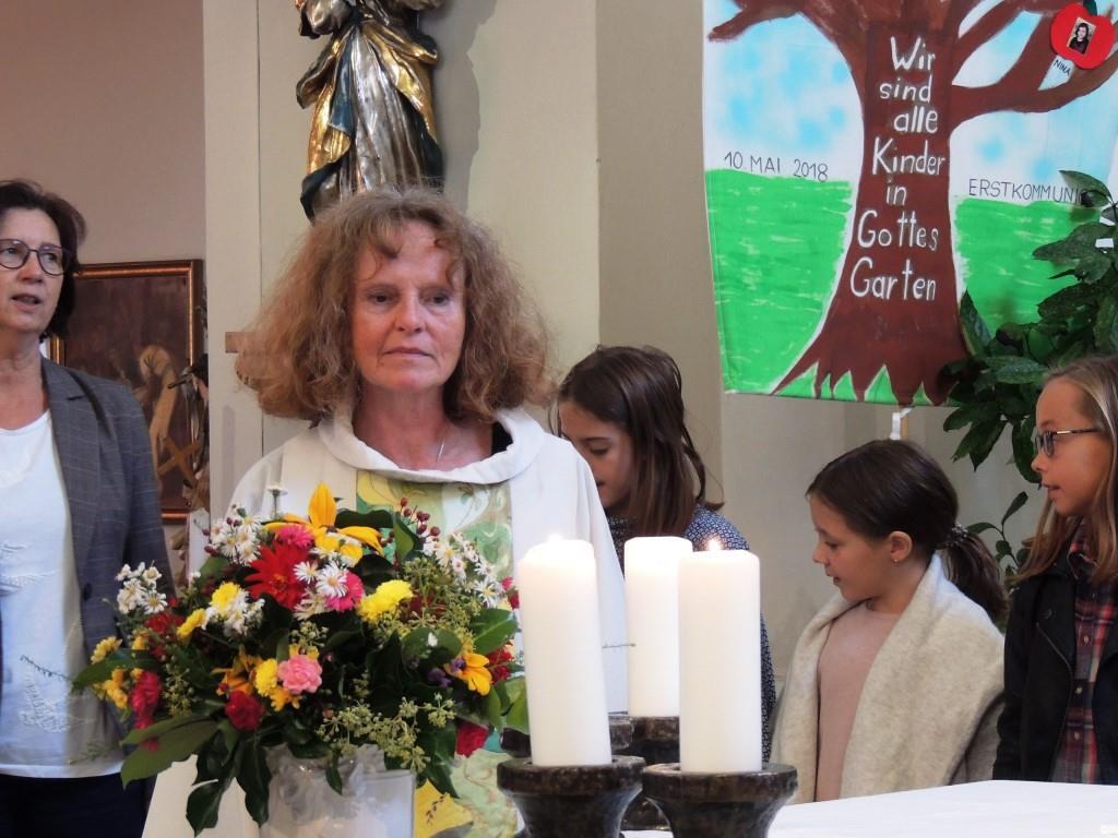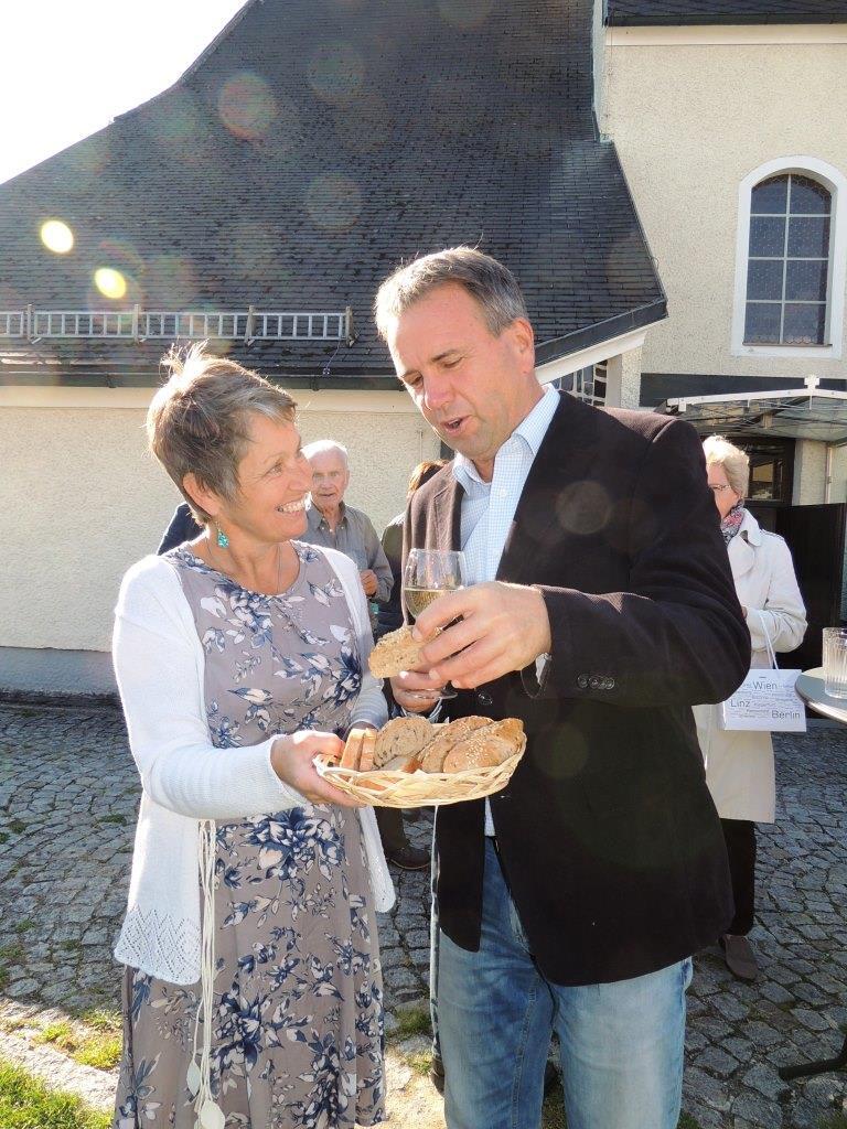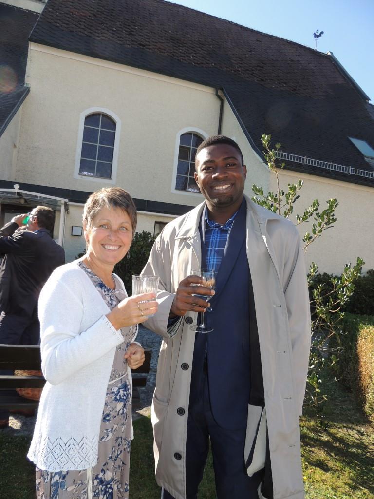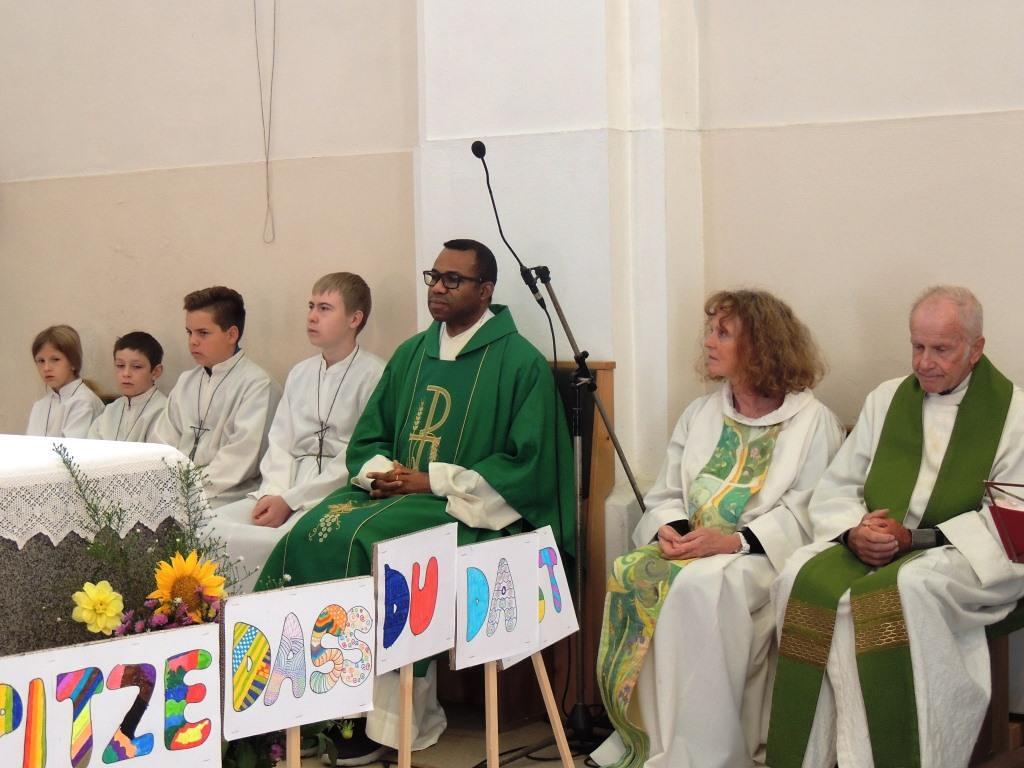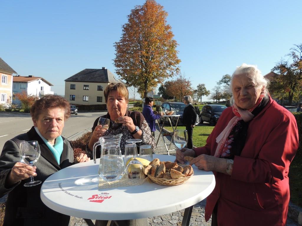 Nach der Messe gab es bei strahlendem Sonnenschein eine kleine Agape und die erste Gelegenheit für die Pfarrbevölkerung Dagmar Ruhm näher kennen zu lernen.