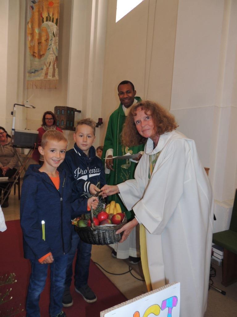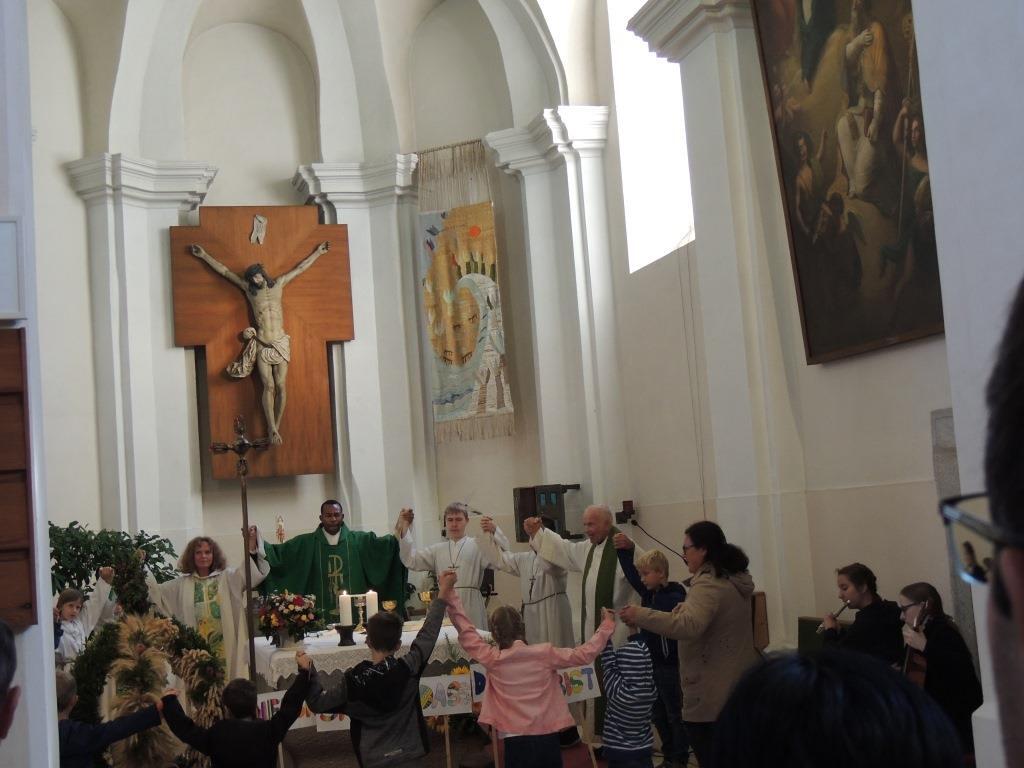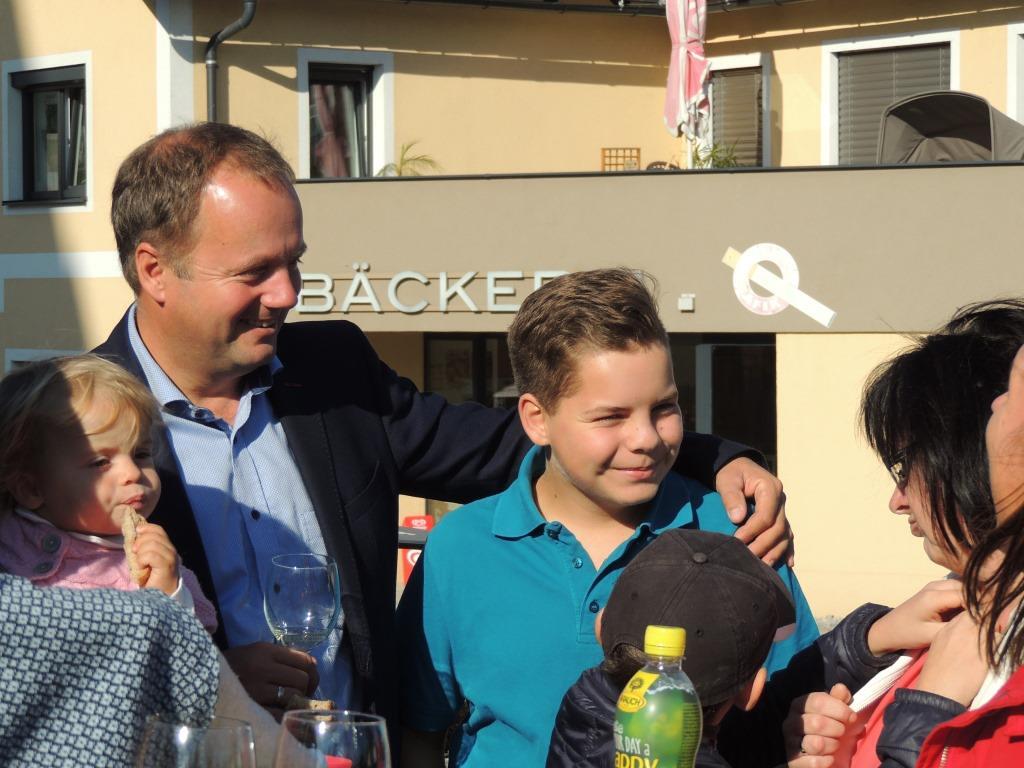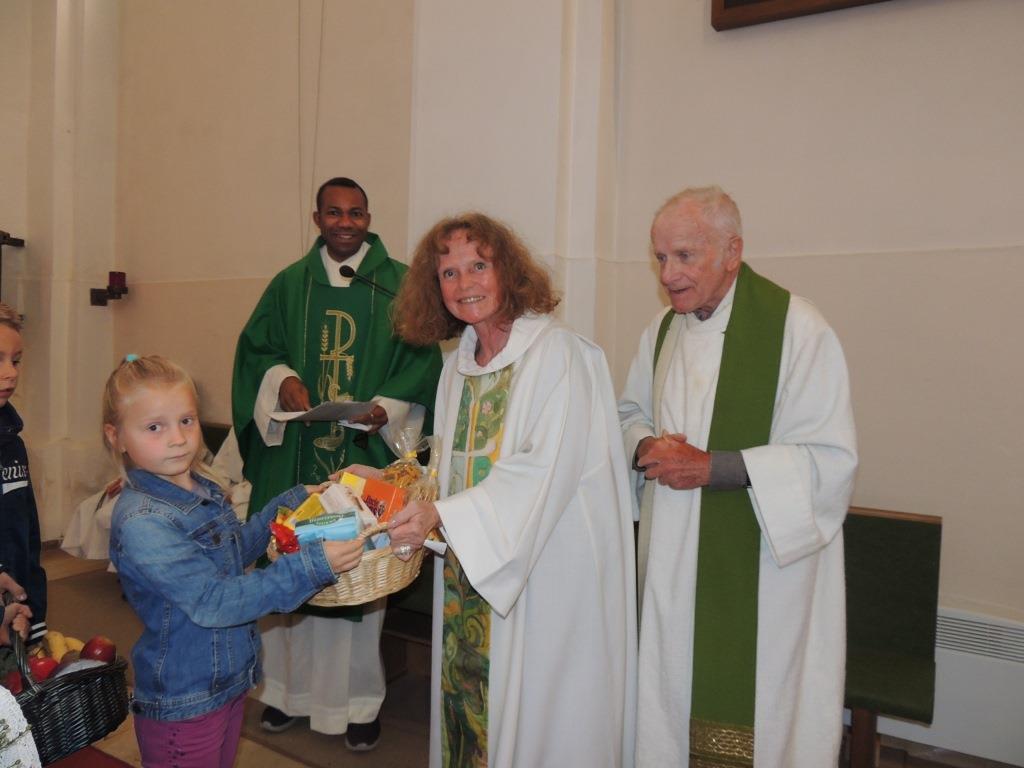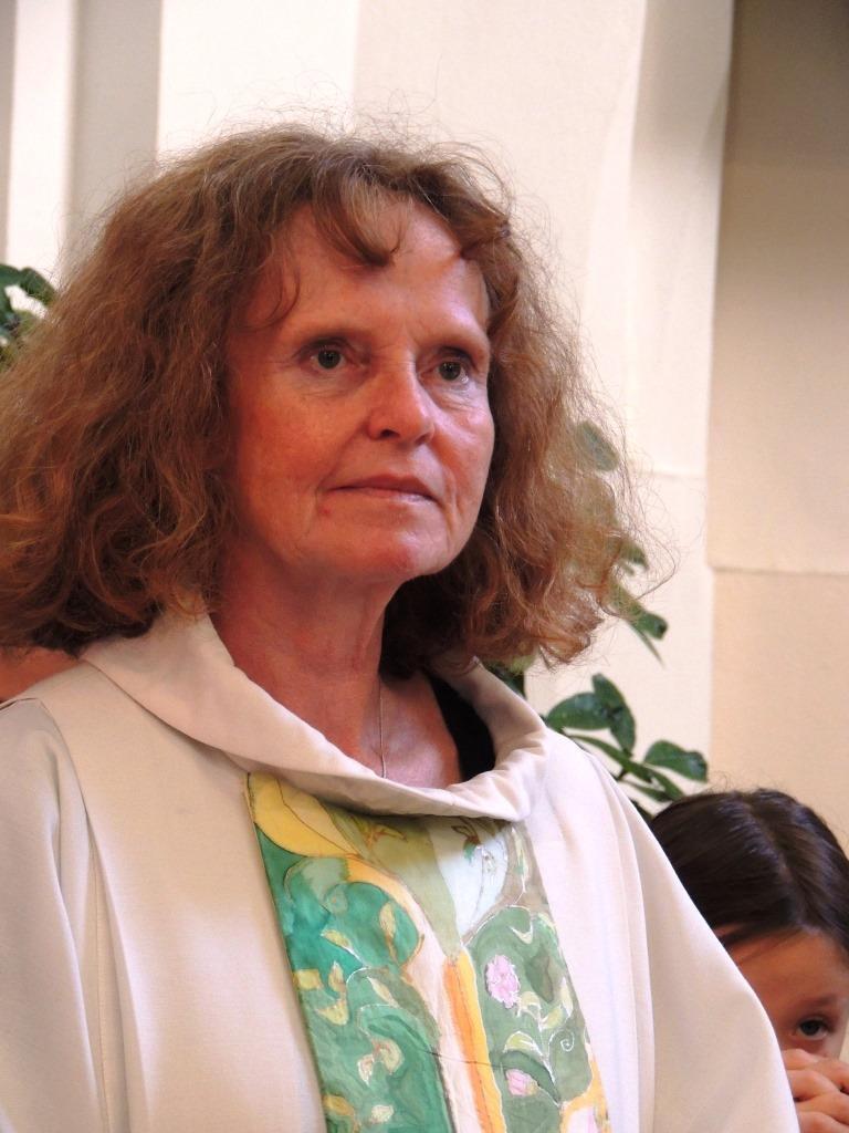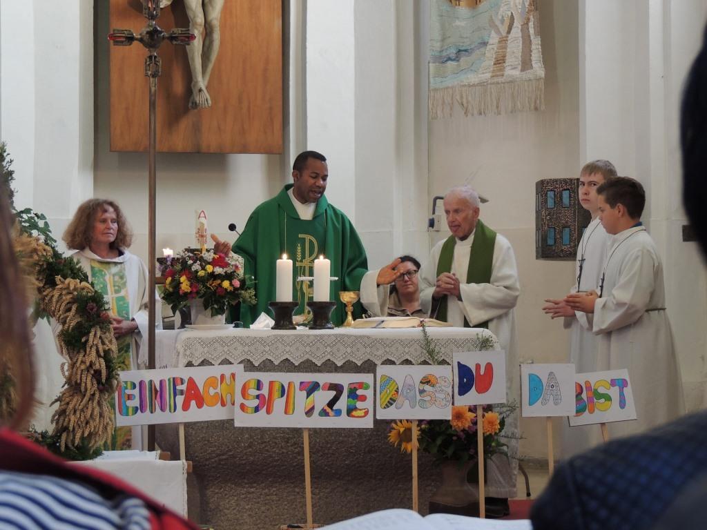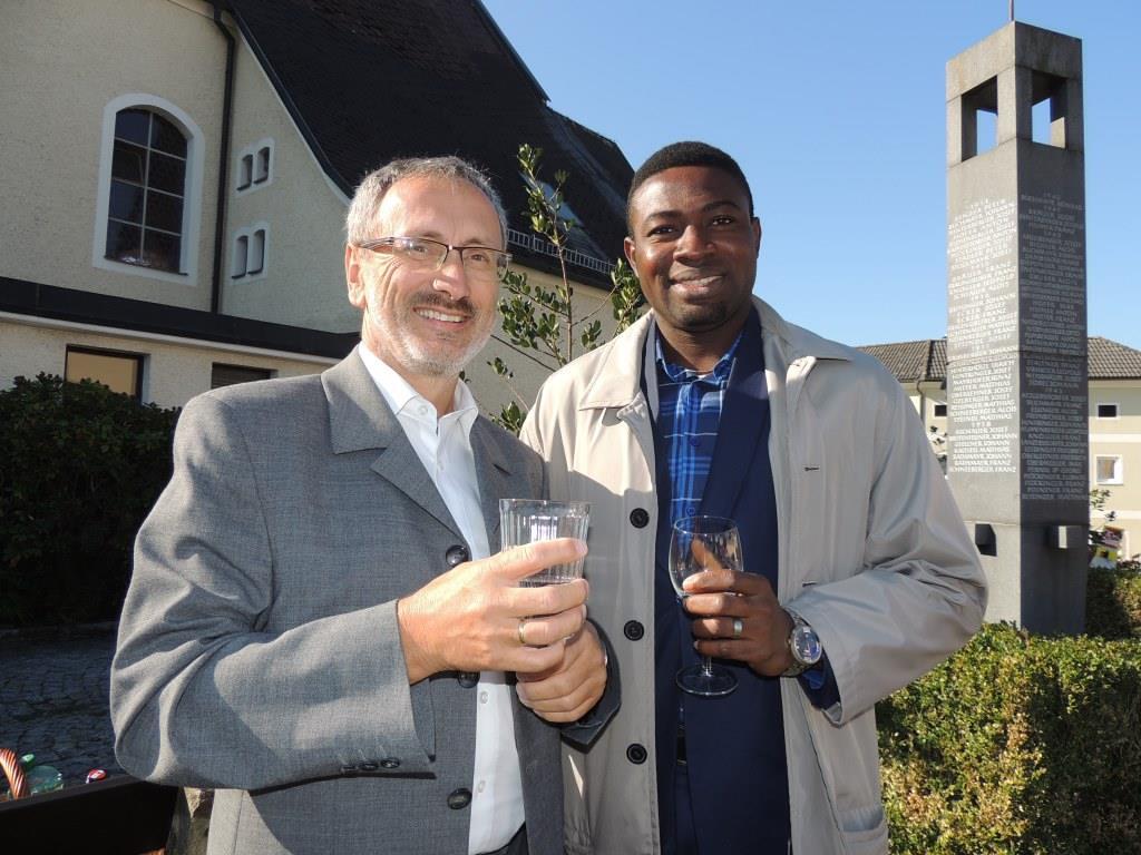 Nach der Messe gab es bei strahlendem Sonnenschein eine kleine Agape und die erste Gelegenheit für die Pfarrbevölkerung Dagmar Ruhm näher kennen zu lernen.