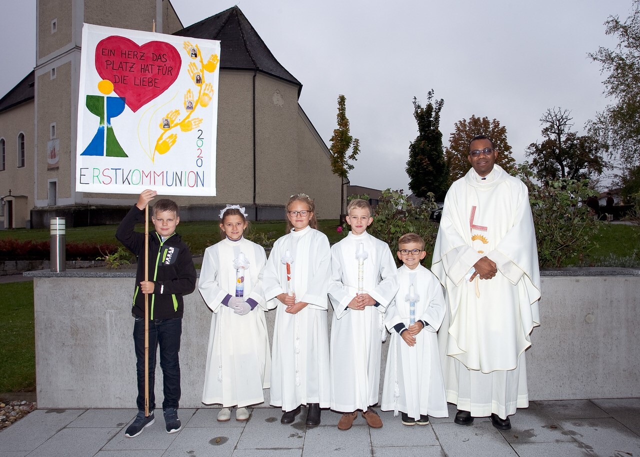 Wir haben uns sehr gefreut, dass dies unter den derzeitigen Bedingungen so feierlich und im Kreis von Pfarrgemeinde und Familien möglich war! Zum Einzug spielte die Musikkapelle, im Gottesdienst hatten wir die Unterstützung von Roswitha Steindl’s Chor und Musikern, danach gabs Kuchen für die Kinder und ihre Mamas. Schön, wenn in komplizierten Zeiten die Pfarre zusammenhält! Danke!