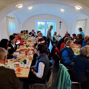 Von der Sonne begleitet, eingebettet in einer einzigartige Naturlandschaft führte die Wanderung vom Kalvarienberg zum Pfarrzentrum, wo die Jungscharführerinnen ein tolles Frühstück für die TeilnehmerInnen vorbereitet hatten. Nach dem Frühstück führte der Weg über das Fuchsbachtal zum Donaublick und weiter zum Steiner Felsen. Mit einem Bus ging es dann zurück zur Hoamat wo im Gastgarten das gemeinsame Mittagessen den Abschluss bildete.