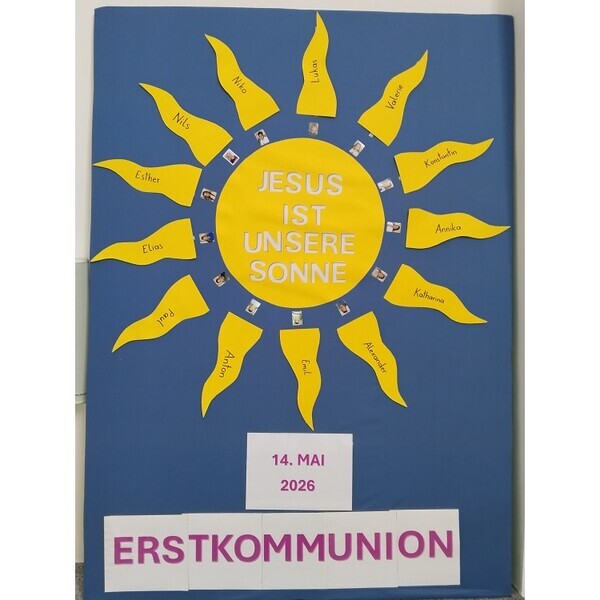 Bereits am 8. Februar haben sich die Erstkommunionkinder bei einer Familienmesse mit einem Sonnenstrahl vorgestellt und am Ende ist eine kraftvolle Sonne entstanden. Unsere Religionslehrerin Klara Lehner hat die Messe vorbereitet und gemeinsam mit den Kindern gestaltet.