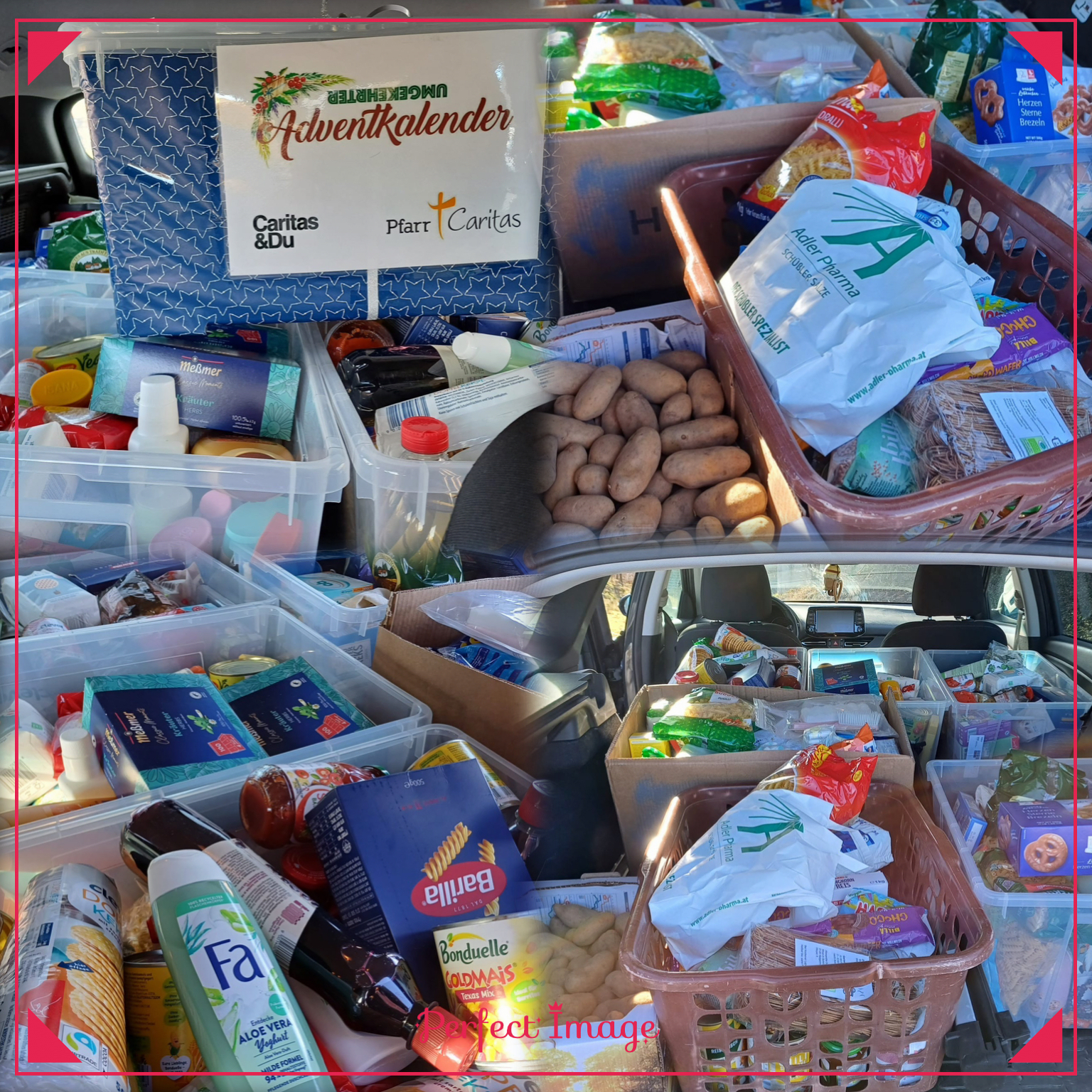 Die vielen Spenden aus dem umgekehrten Adventkalender wurden vom Fachteam zur regionalen Caritas nach Braunau gebracht und dort mit großem Dank entgegengenommen.