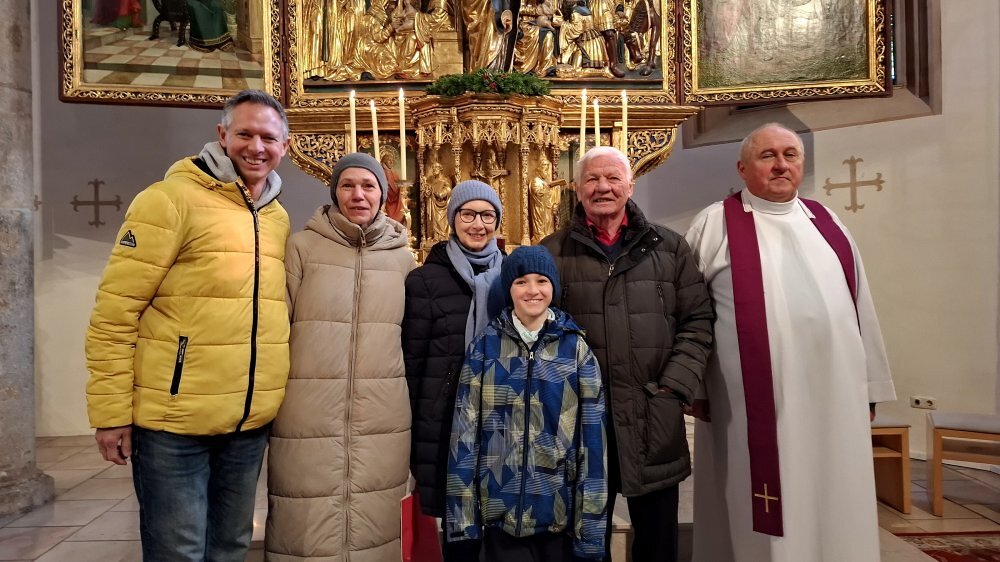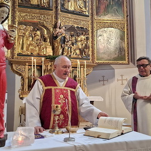 Am Ende des Gottesdienstes wurde ein besonderer Dank ausgesprochen: Herrn Reinhard Kerschbaumer dankte Pfarrer Richard Czurylo herzlich für seine jahrzehntelange aktive Mitgestaltung des Pfarrlebens. Die mitfeiernde Gemeinde schloss sich diesem Dank mit langanhaltendem Applaus an. Wir freuen uns sehr, dass er uns auch in Zukunft weiterhin als Mesner unterstützt.