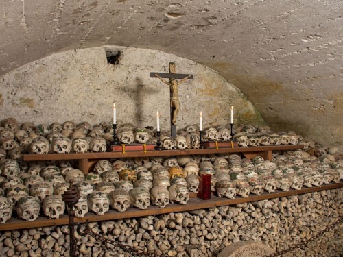 Today, new skulls are only rarely placed in the charnel house. However, this is still possible on request—for both Catholic and Protestant Christians, who continue to share the same cemetery. A meaningful symbol of ecumenical harmony