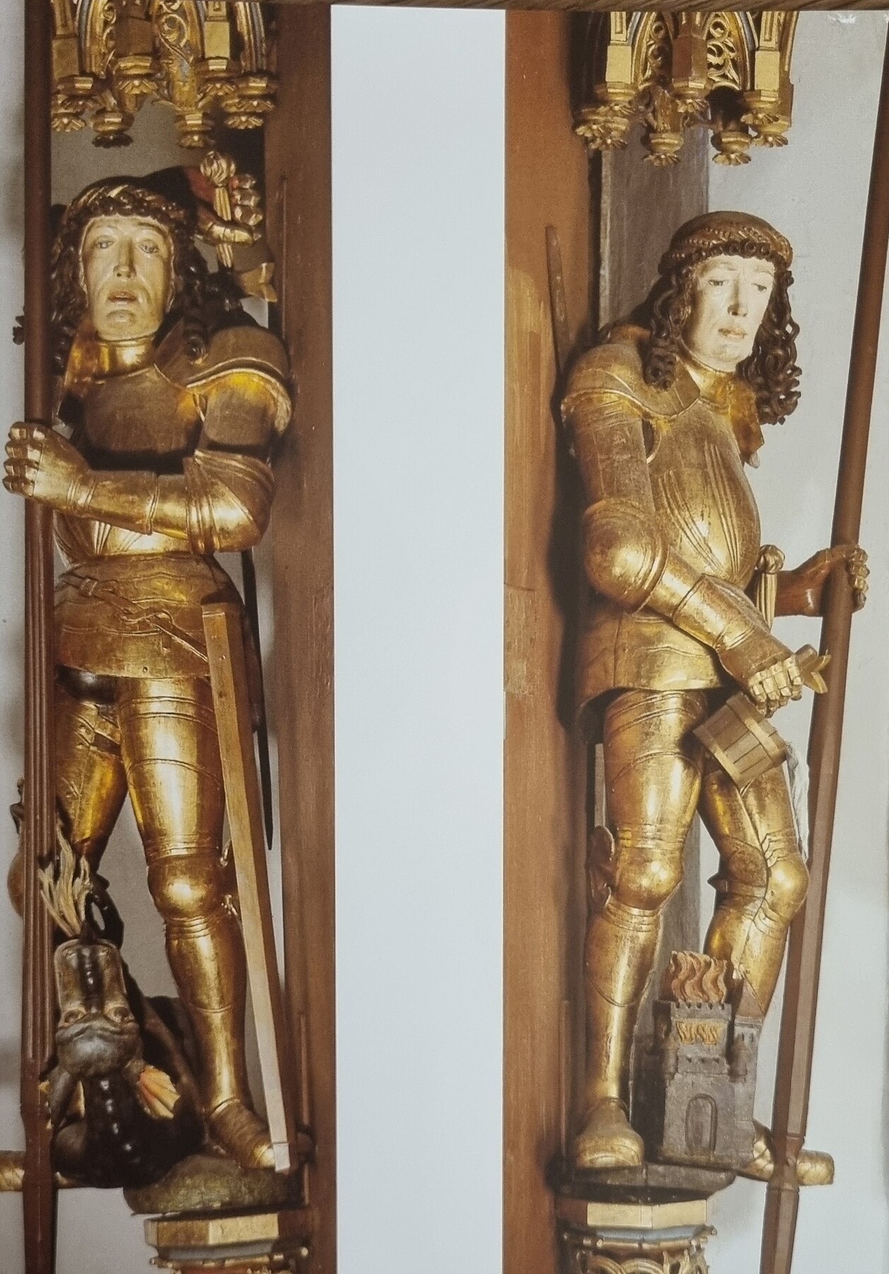 Im Gespränge haben ebenfalls Heilige ihren Platz gefunden die zu uns Hallstätterinnen und Hallstättern einen engen Bezug haben: Der heilige Andreas, Patron der Fischer, der heilige Christopherus, Patron der Salzschiffer zusammen mit dem heiligen Nikolaus oder der heilige Wolfgang.