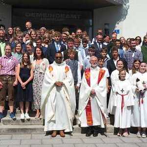 Begleitet durch die Musikkapelle begann die Firmung mit einem großen Einzug in die Kirche. Musikalisch gestaltet wurde die Firmung wieder durch den Chor Cool Voices unter der Leitung von Gabi Lahner.