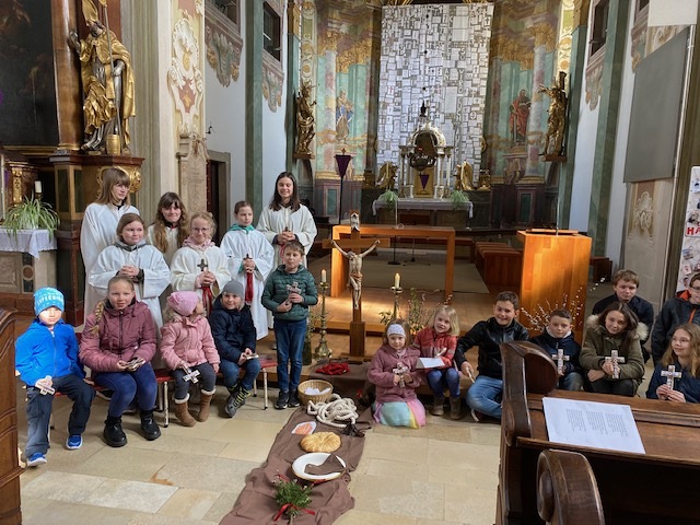 Alle Kinder sind auch heuer wieder eingeladen, die Heilige Woche mit uns zu feiern! Palmbuschenbinden vor dem Palmsonntag, Palmweihe vor der Kirche, die Todesstunde Jesu feiern, Kinderfeier und Ostereier suchen ...
