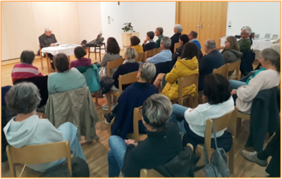 Die Lesung war gut besucht, was uns sehr gefreut hat. Zuerst gab er einen Einblick in seine neuesten zwei Werke: „Leirich’s Zögern“ und „Diese paar Minuten“. Anschließend unterhielt er uns mit Liedern aus eigener Feder und wir hatten mit seinen humorvollen, satirischen Texten viel zu lachen.