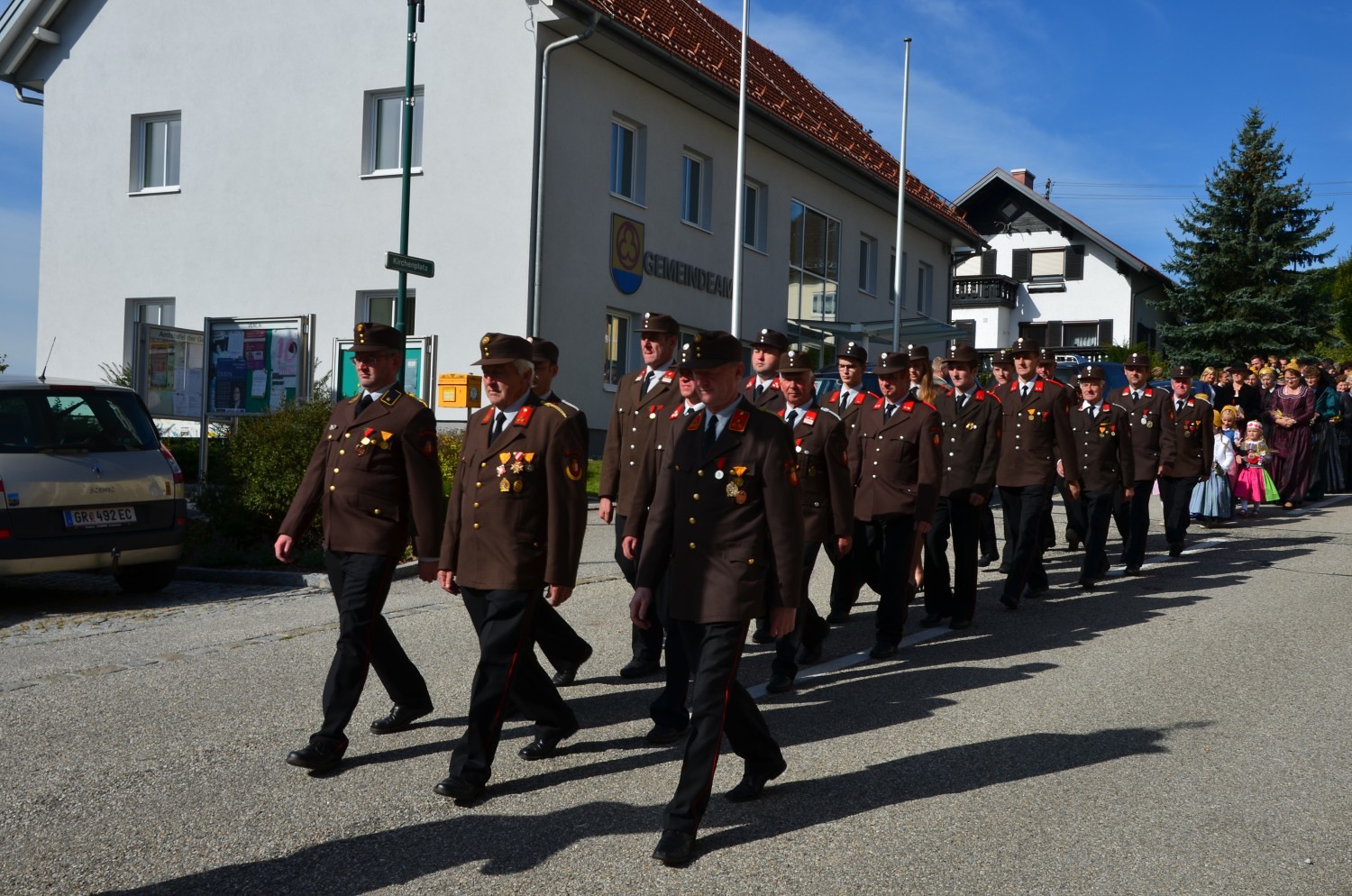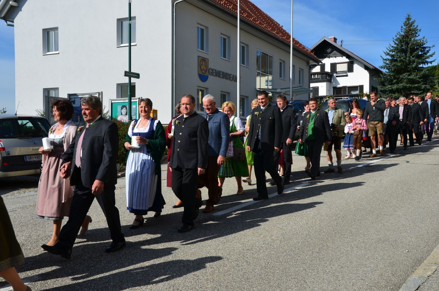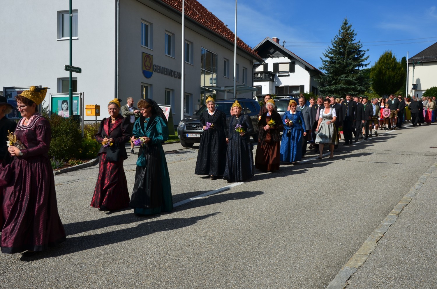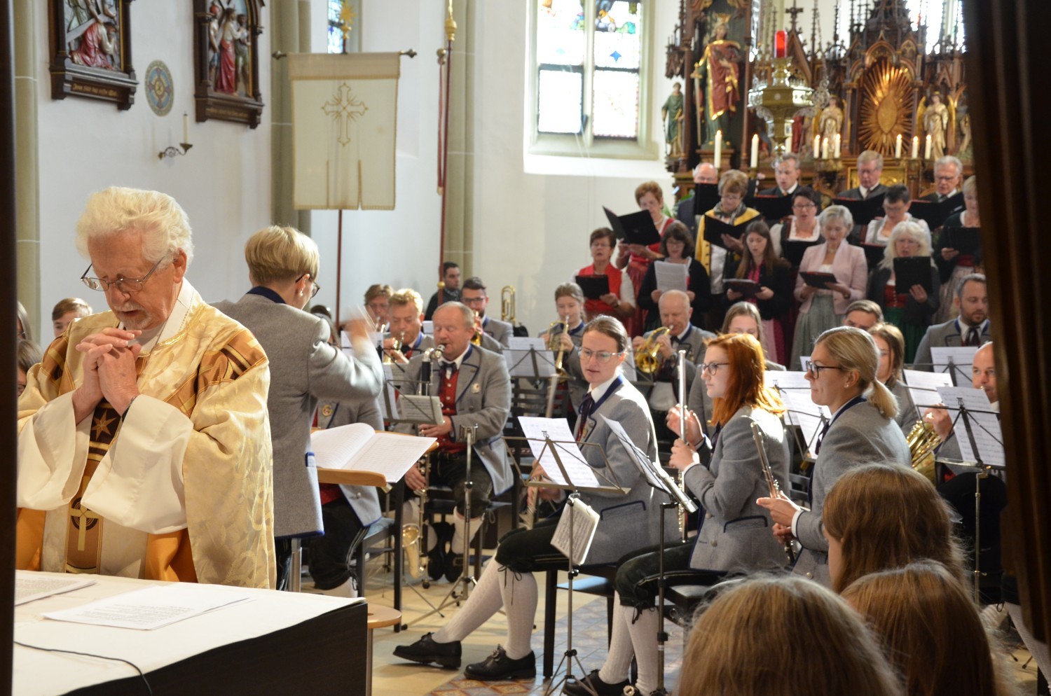 Wie jedes Jahr, eröffnete nach dem feierlichen Einzug der Kindergarten mit einem Lied den Dankgottesdienst. Heuer gestaltete erstmalig der Chor mit der Musikkapelle den Gottesdienst musikalisch. Im Zuge dieser Feier wurden auch die Ehejubilare geehrt. Sieben Paare feierten ihre silberne Hochzeit. Drei Paare dankten für 40 Jahre Ehe. Die Goldene Hochzeit feierte ein Paar. Sie erhielten eine Kerze von der KFB/KMB und durften im Anschluss an die heilige Messe beim Pfarrfest ihr Jubiläum noch ausgiebig feiern.