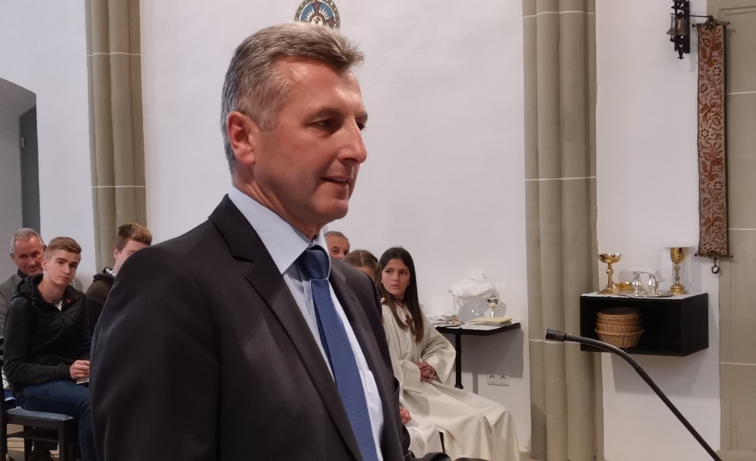 In einem sehr festlichem Gottesdienst, den der Heiligenberger Kirchenchor mit neuen kirchlichen Liedern mitgestaltete, predigte Bischof Manfred Scheuer über die Wertschätzung und den Halt im Glauben.