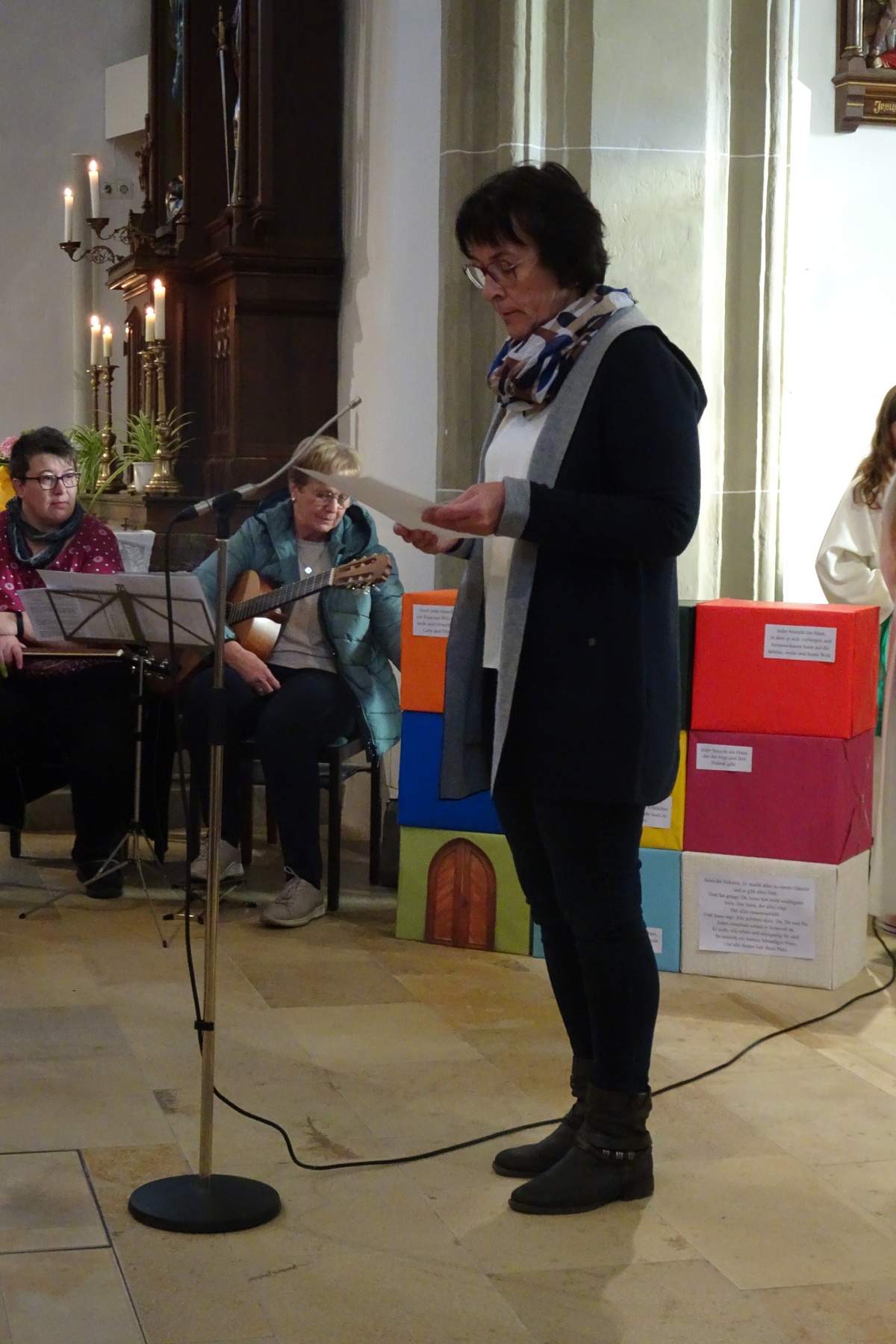 Wir hatten vor dem Altar verschiedene Bausteine liegen. Jeder hatte seine Schönheit. Jeder hatte Ecken und Kanten. Aber alle Steine wurden gebraucht! Es gab keine nutzlosen Steine. Jeder machte das Bauwerk größer und schöner und es entstand eine schöne Kirche die von den Kindern gebaut wurde.