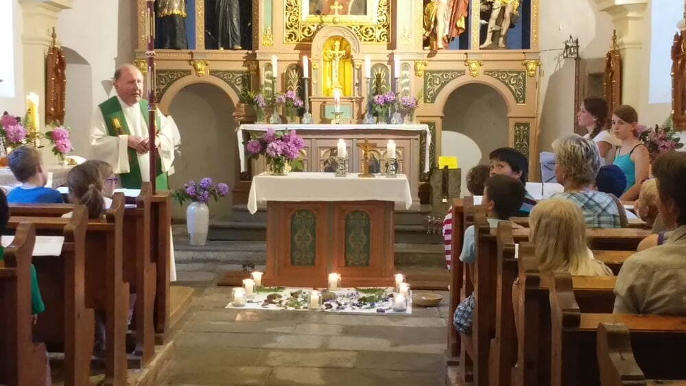 Einige Eindrücke vom Kindergottesdienst in der Waldkapelle am 12. Juni.