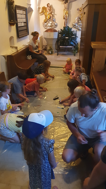 Als Andenken an diesen schönen Abend wurden kleine Kirchenfenster auf einer Folie gestaltet.