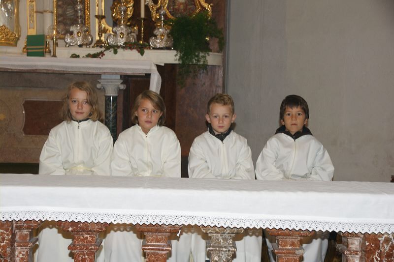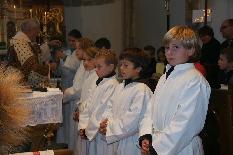 Musikalisch wurde das Erntedankfest von der Musikkapelle gestaltet. Anschließend lud die Ortsbauernschaft zum Pfarrfrühstück ein. Die Messe um 9.30 Uhr wurde vom Kinderliturgiekreis gestaltet. Die Kindergartenkinder nahmen am Fest teil und trugen ihre selbstgebastelten Erntehüte.