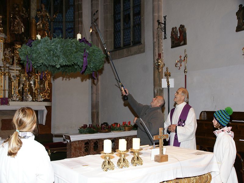 Die Segnung der mitgebrachten Adventkränze und das Entzünden der ersten Kerze ist ein Zeichen dafür, dass wir alle voll Freude die Geburt von Jesus erwarten.