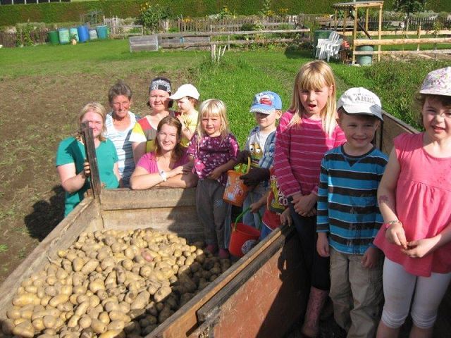 Zum Erntedank wurde diese Fürbitte formuliert: "Lieber Gott, wir, das sind acht Familien vom Südanger, haben heuer im Herbst eine reichhaltige Kartoffelernte von unserem Gemeinschaftsfeld einfahren können. Dieses Projekt hat uns gezeigt, dass dafür viel Einsatz, Zusammenhalt und viel Kraft der Natur nötig ist. Wir danken dir für das Wunder Natur und bitten dich, dass wir Menschen stets ehrfürchtig und behutsam mit dem großen Geschenk Mutter Erde umgehen."