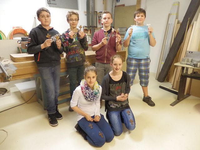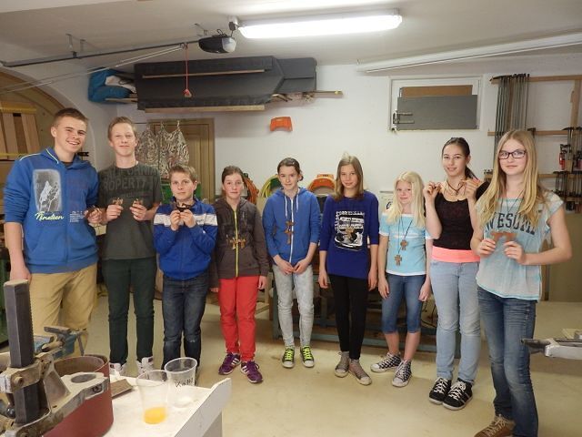 Im Rahmen der Firmvorbereitung bastelten die Firmlinge mit fachlicher Anleitung von Johann Pargfrieder Firmanhänger oder -anstecker für sich selbst und ihren Paten oder ihre Patin. Es sind dabei ganz tolle kleine Kunstwerke entstanden!